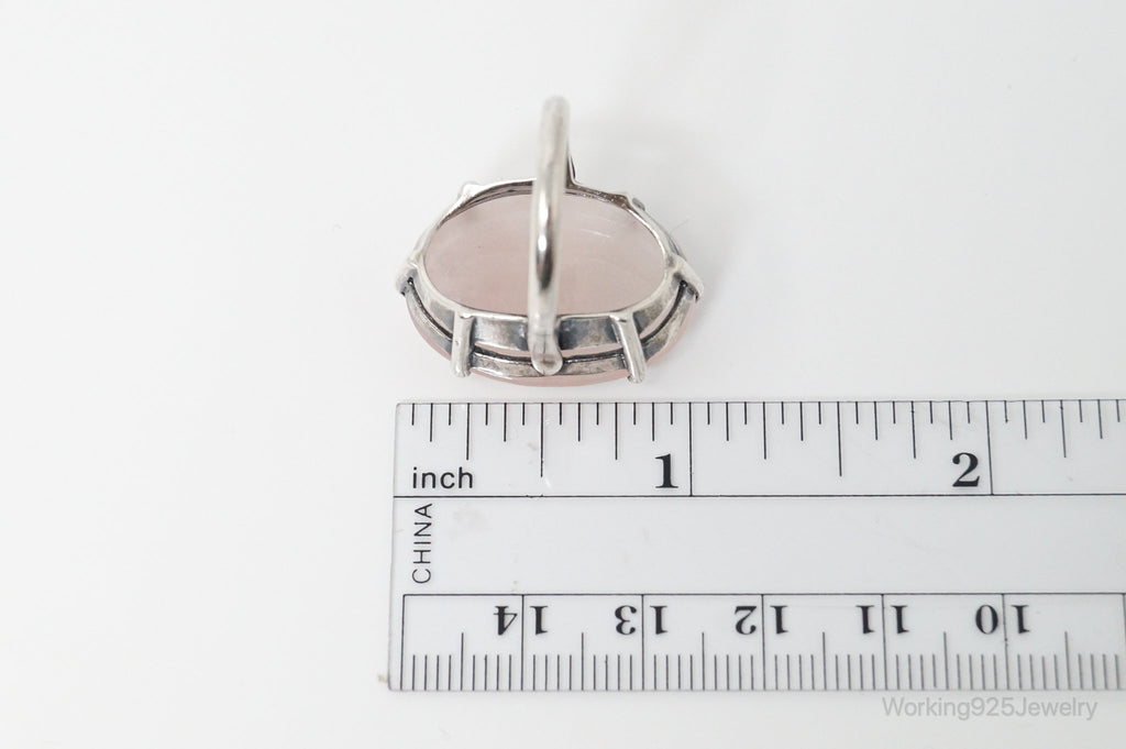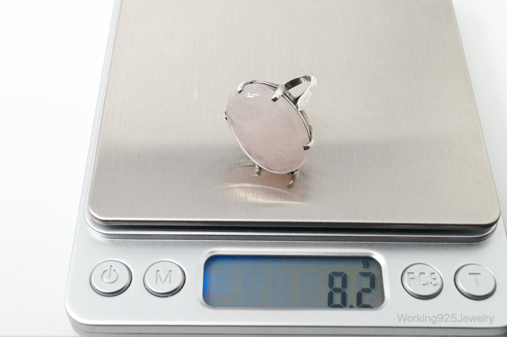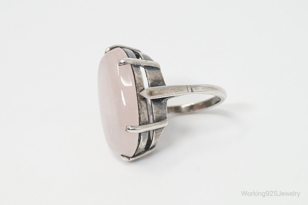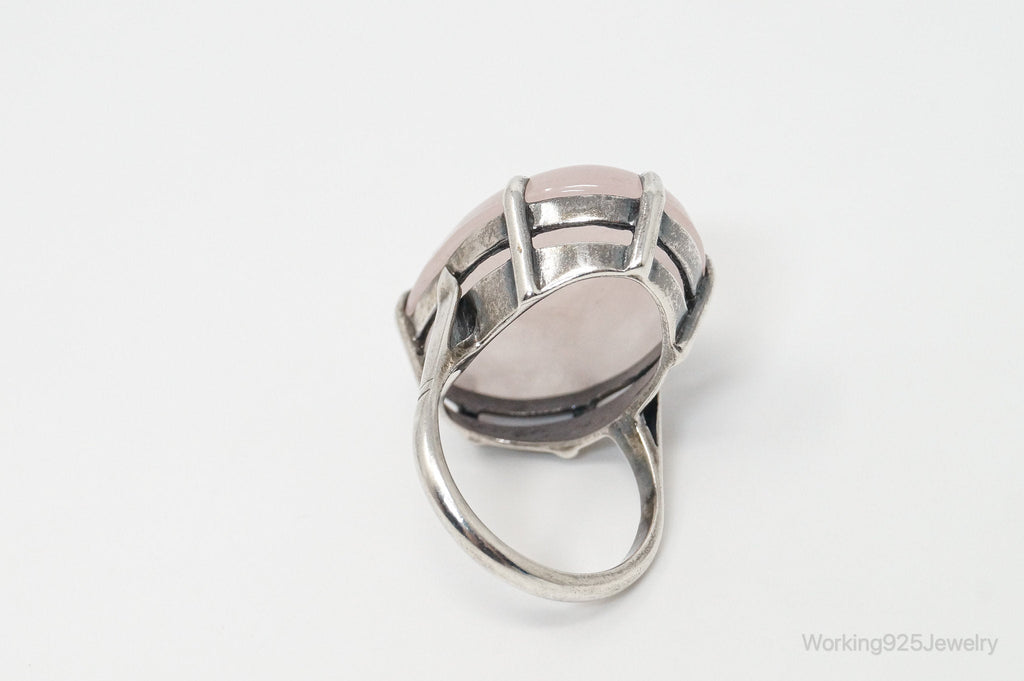 Large Antique Rose Quartz Silver Statement Ring - Size 6.5