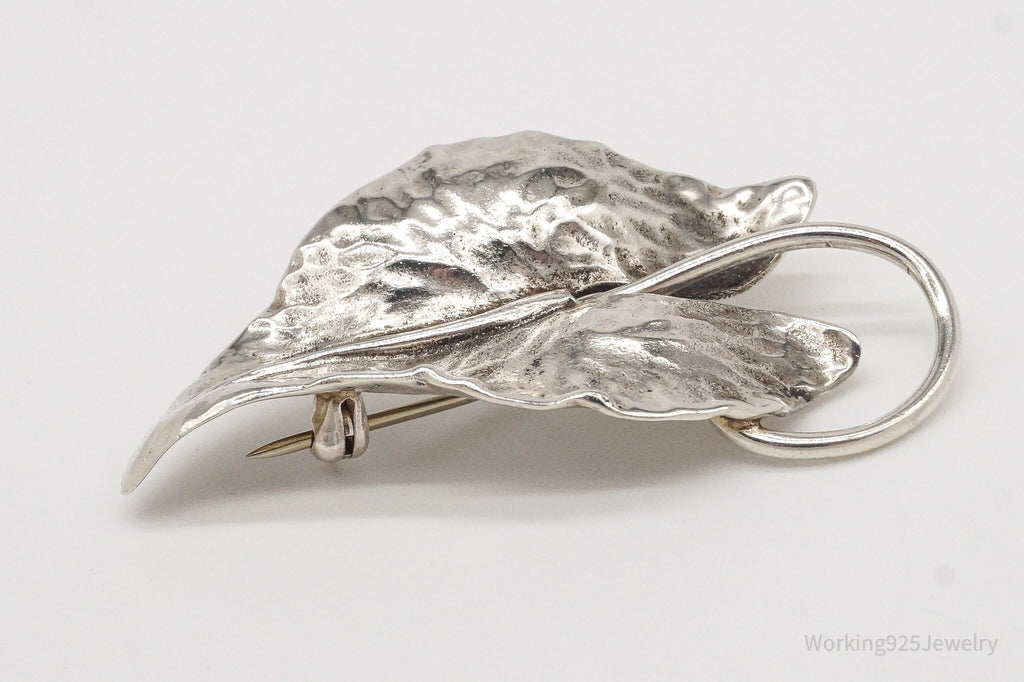 Large Antique Sterling Silver Leaf Pin Brooch