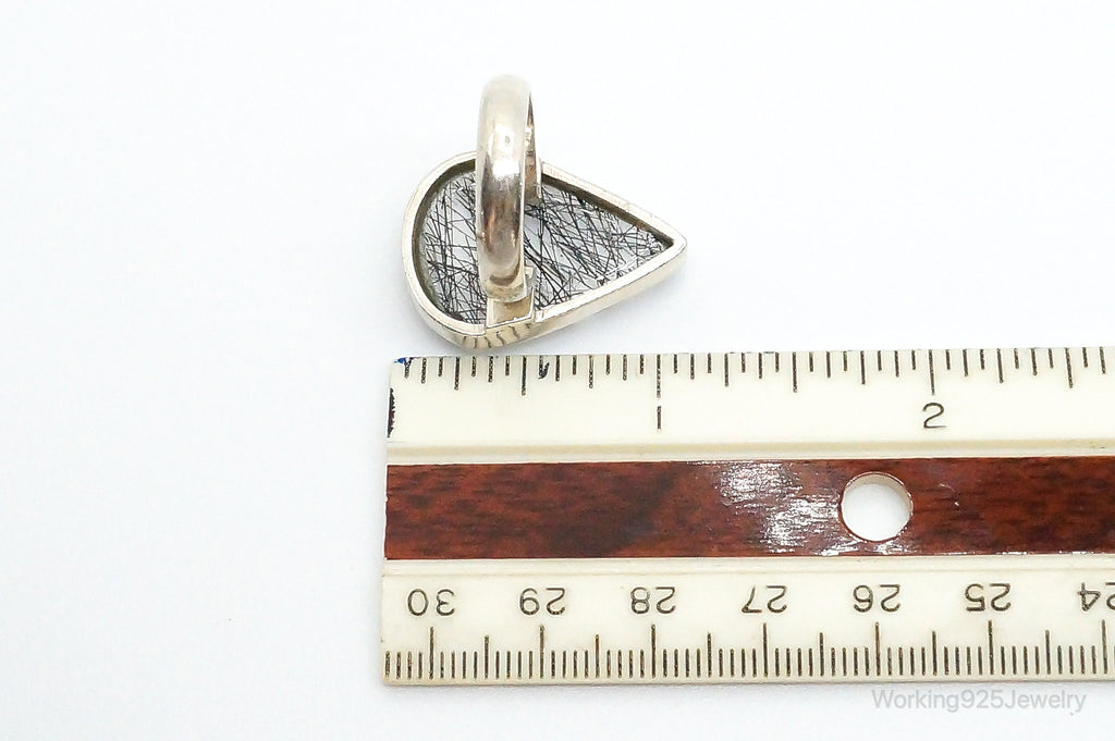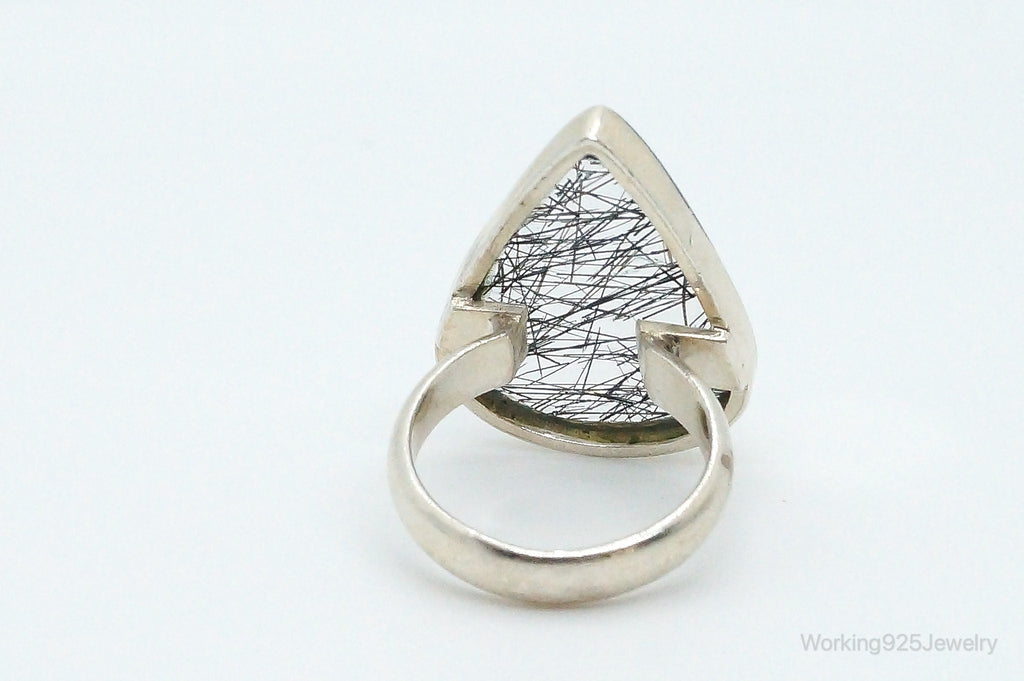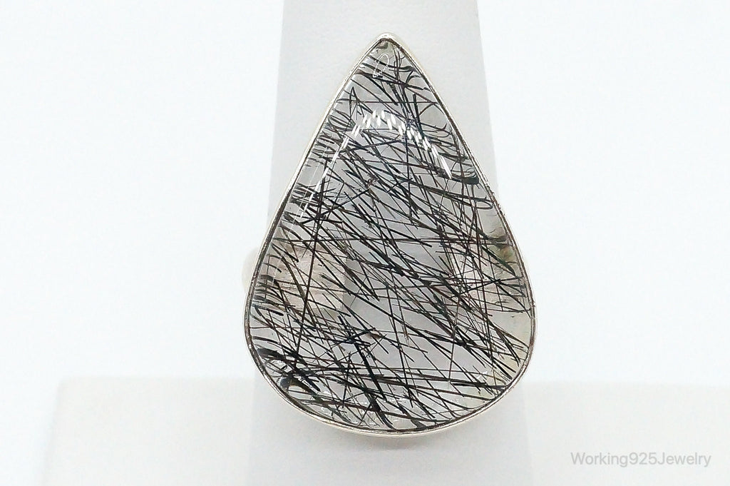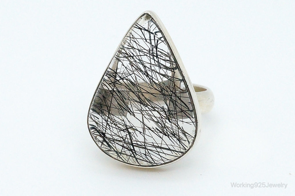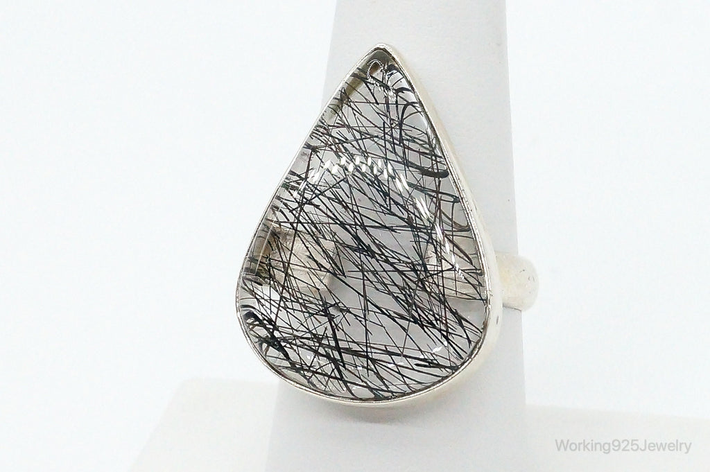 Large Black Tourmalinated Quartz Sterling Silver Ring - Size 7.25