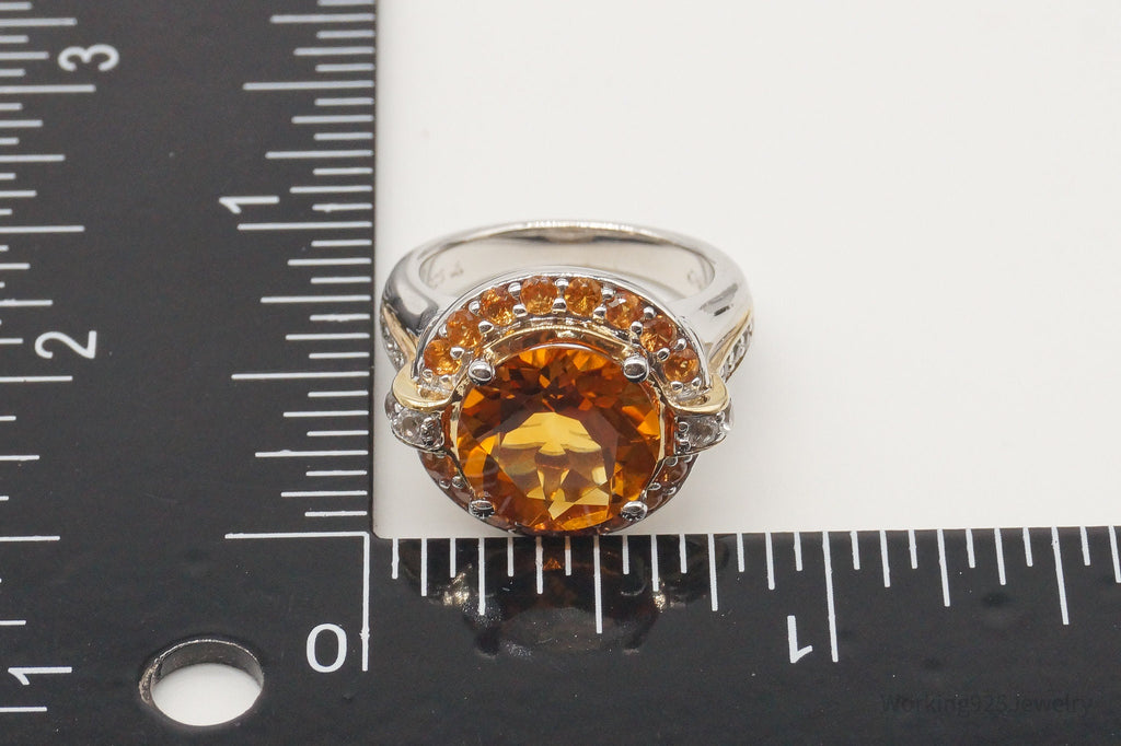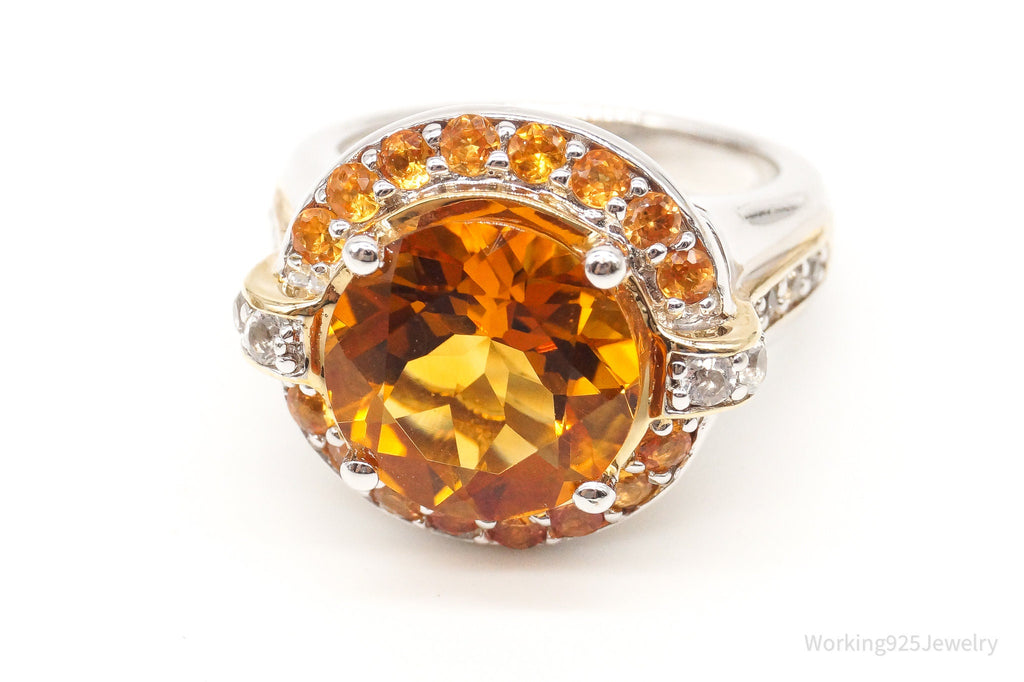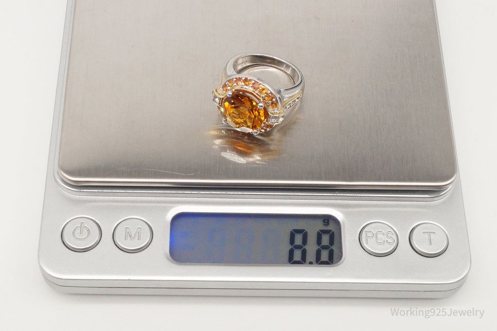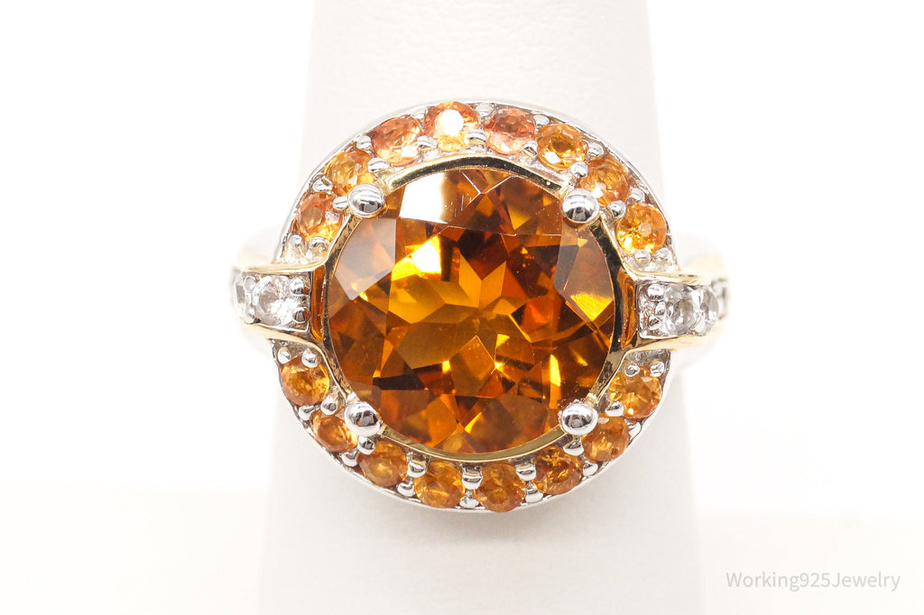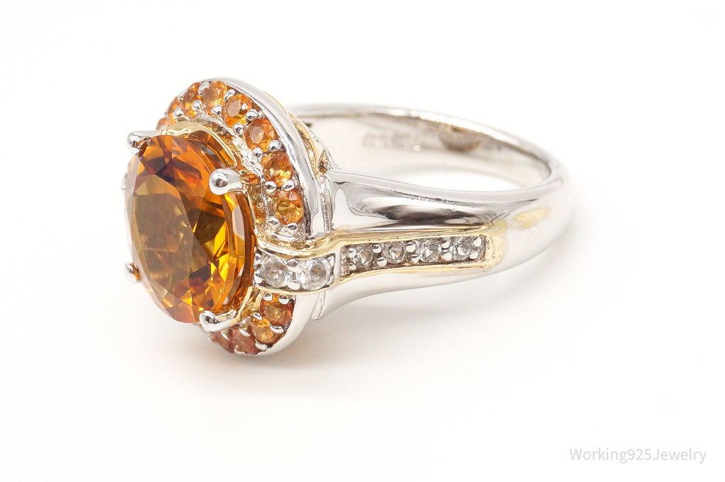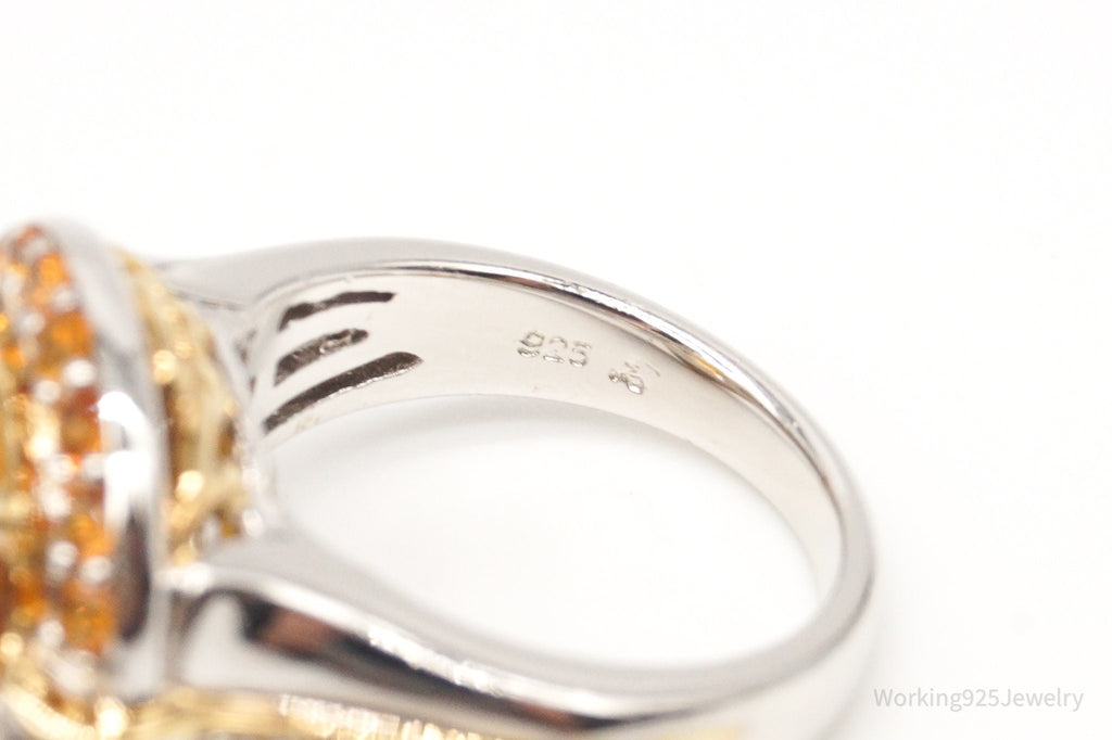 Large Citrine Cubic Zirconia Gold Vermeil Sterling Silver Ring - Size 6