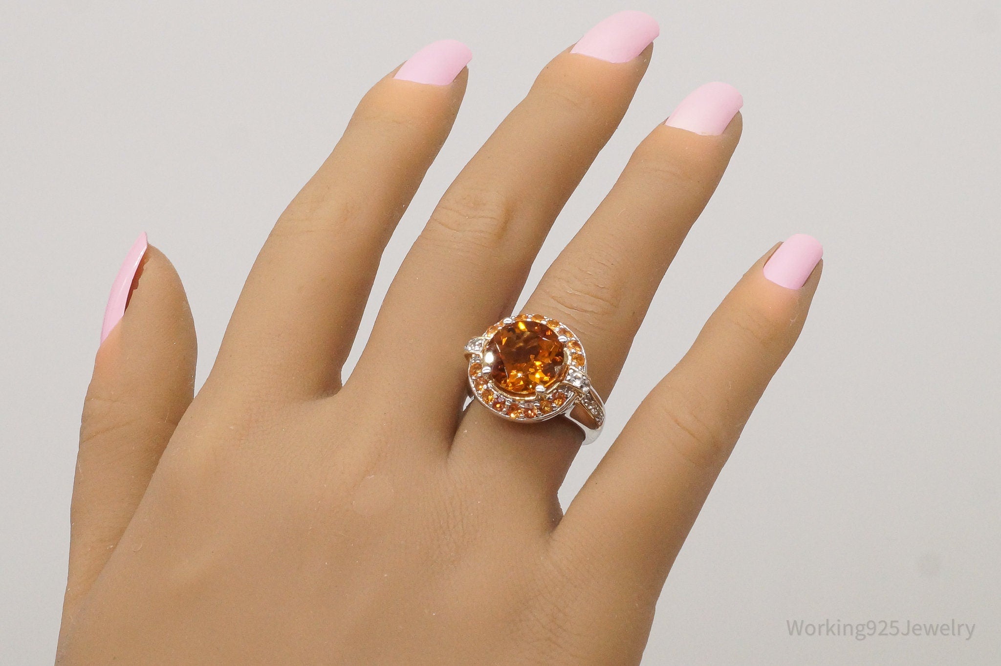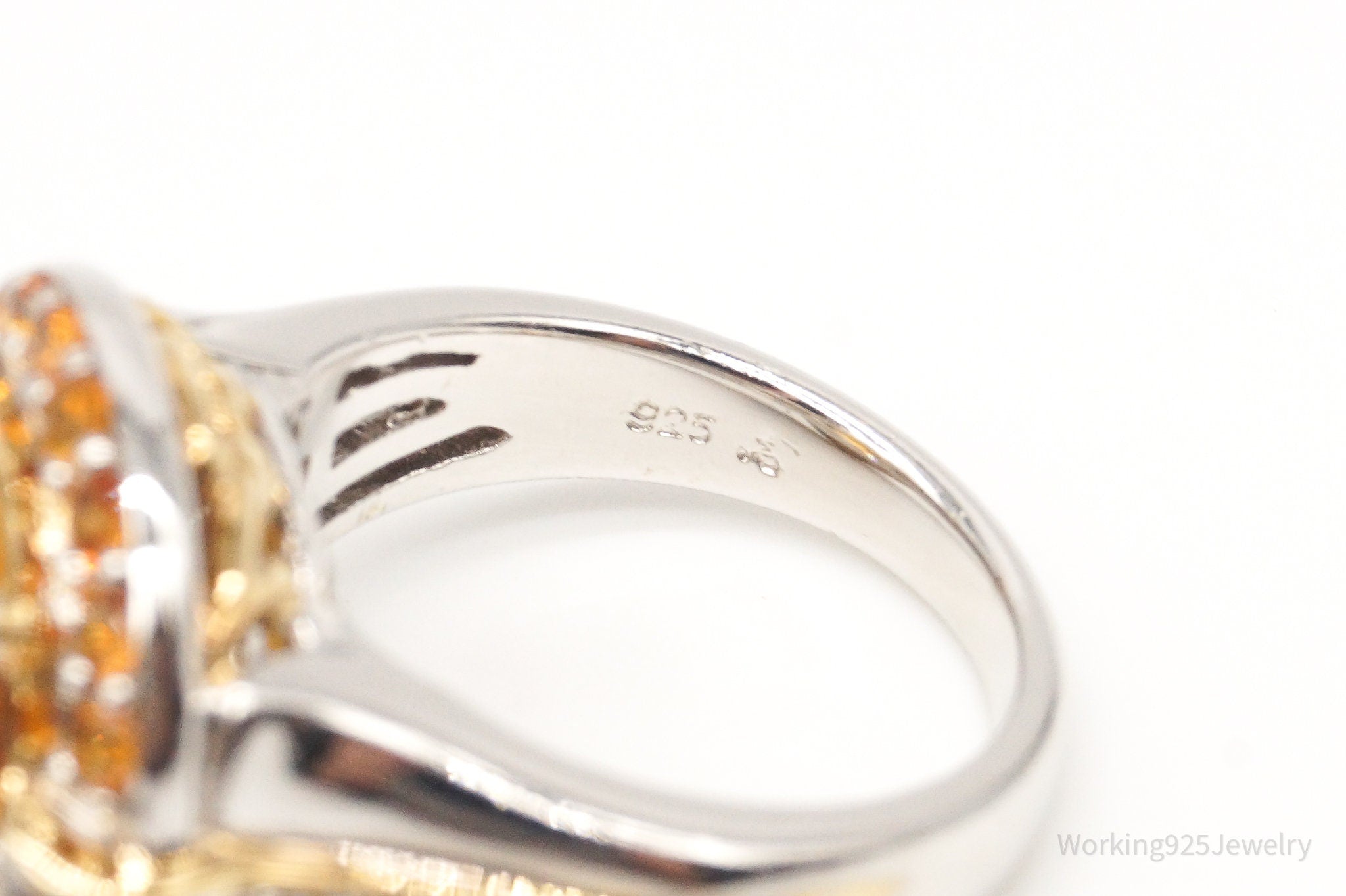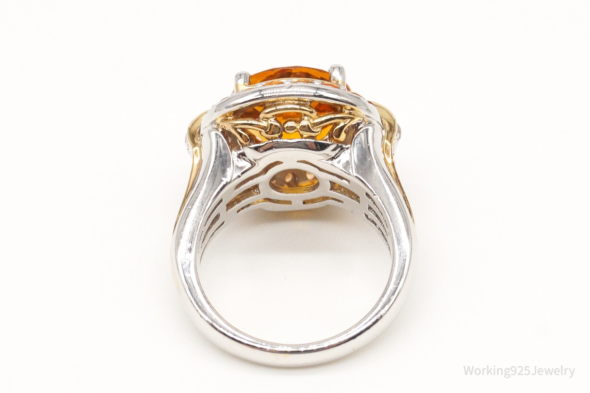Large Citrine Cubic Zirconia Gold Vermeil Sterling Silver Ring - Size 6