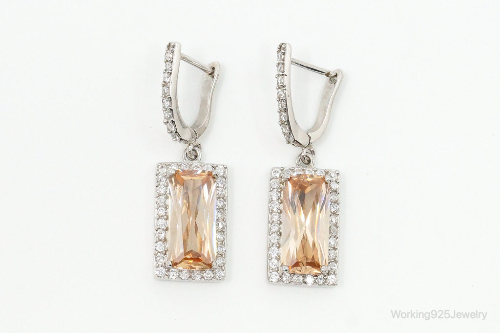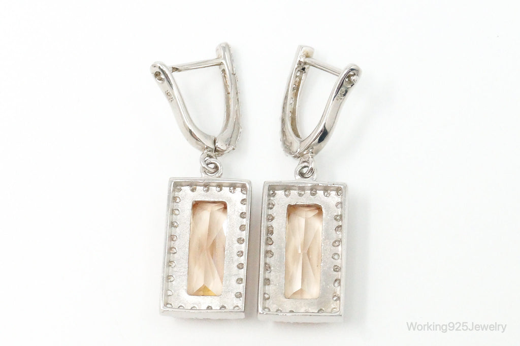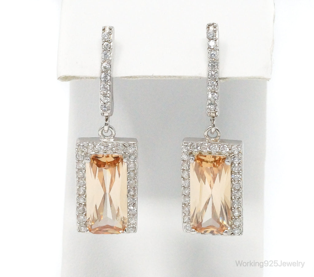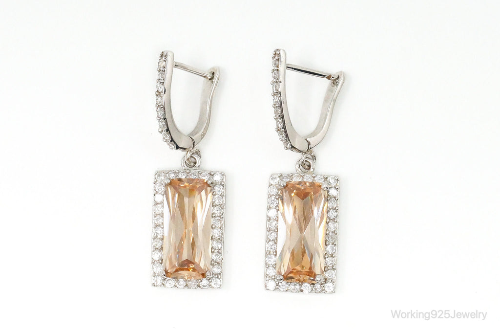 Large Citrine Cubic Zirconia Sterling Silver Earrings
