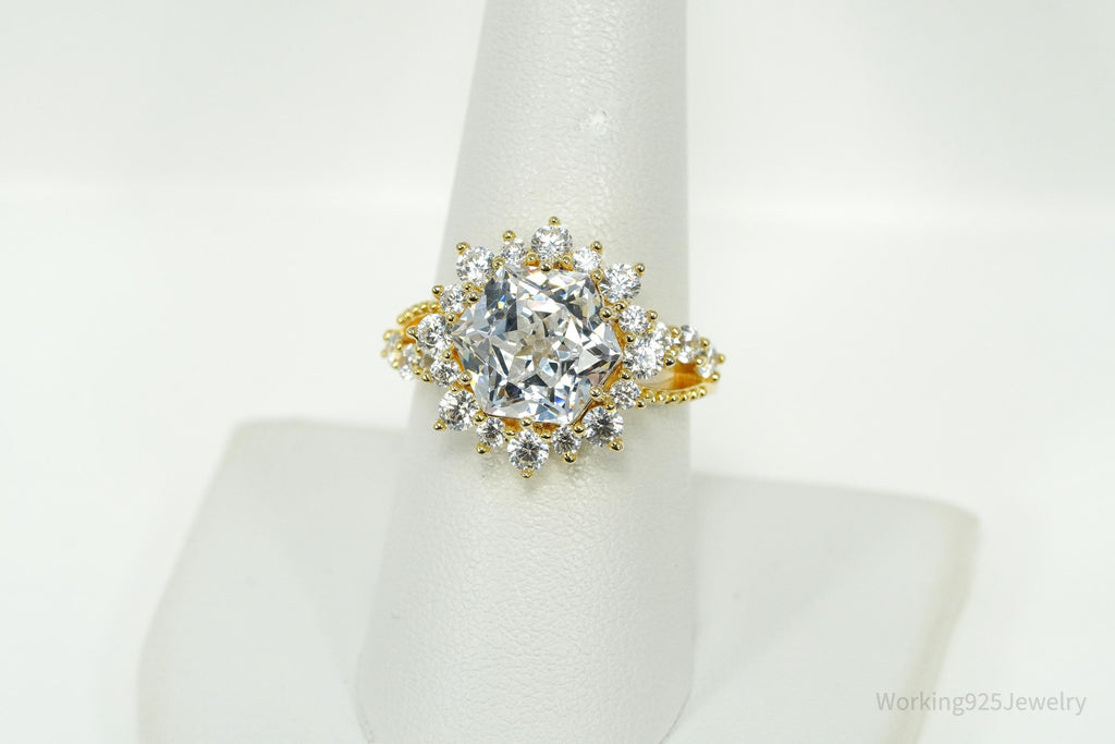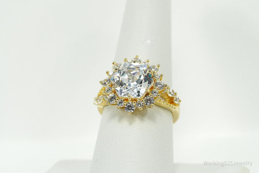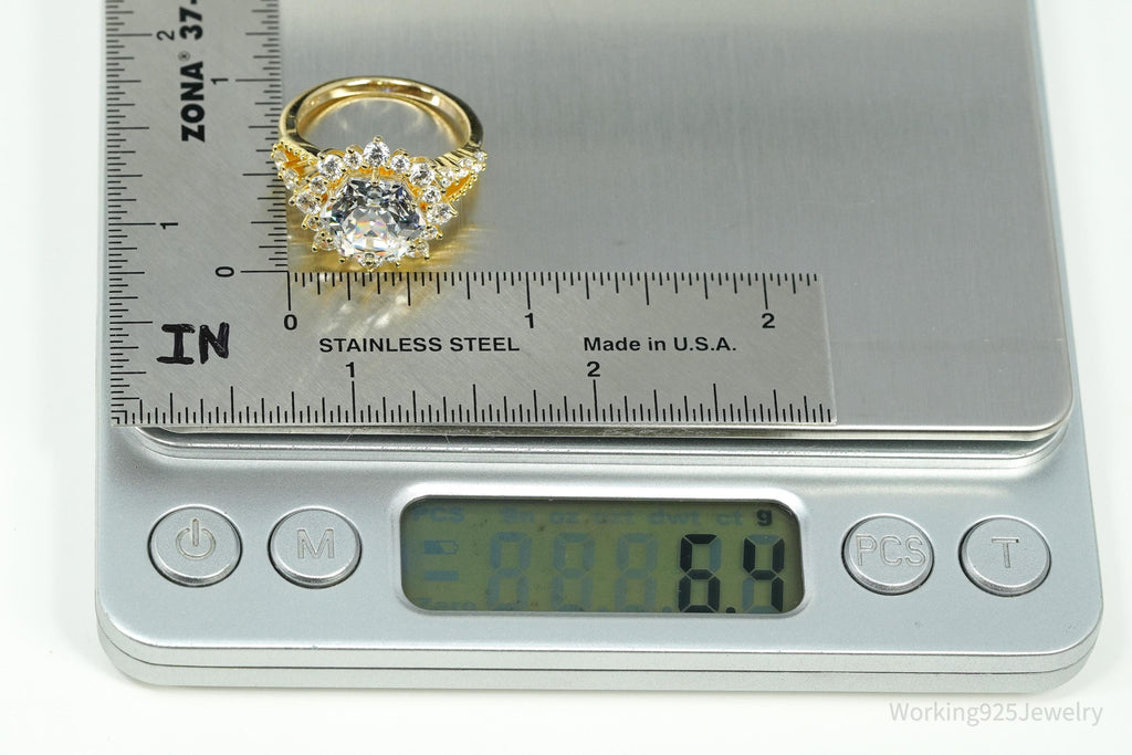 Large Cubic Zirconia Gold Over Sterling Silver Ring - Size 8