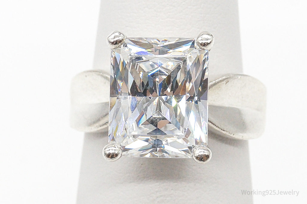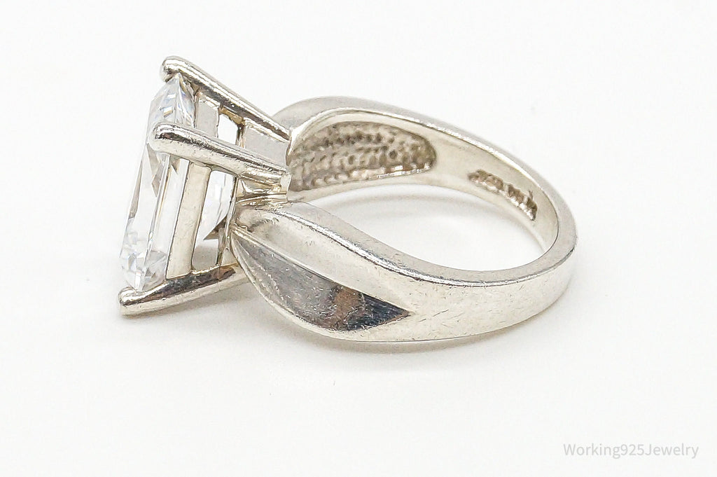 Large Cubic Zirconia Sterling Silver Ring - Size 5