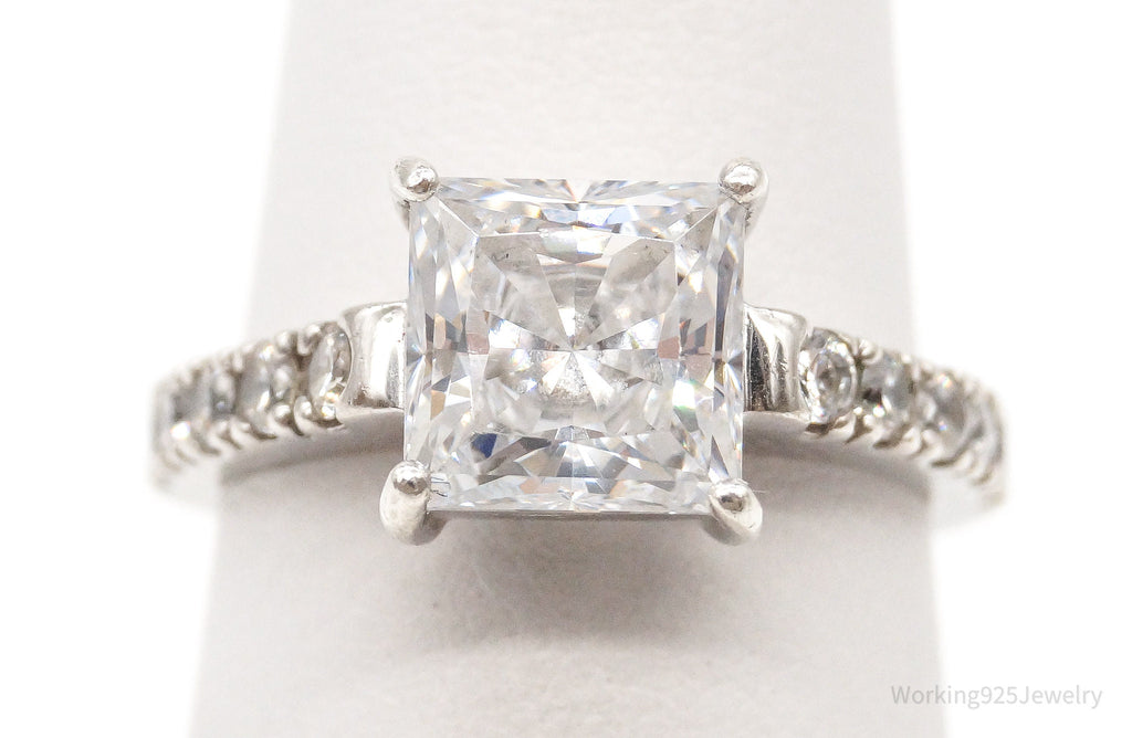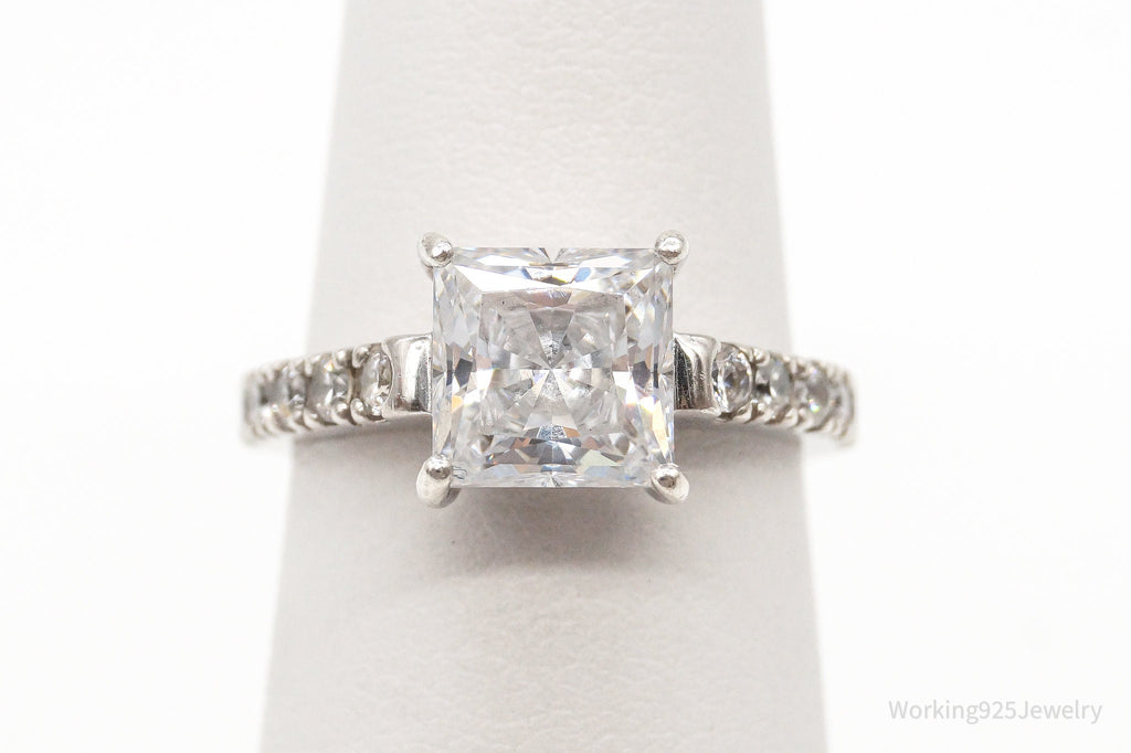 Large Cubic Zirconia Sterling Silver Ring - Size 5