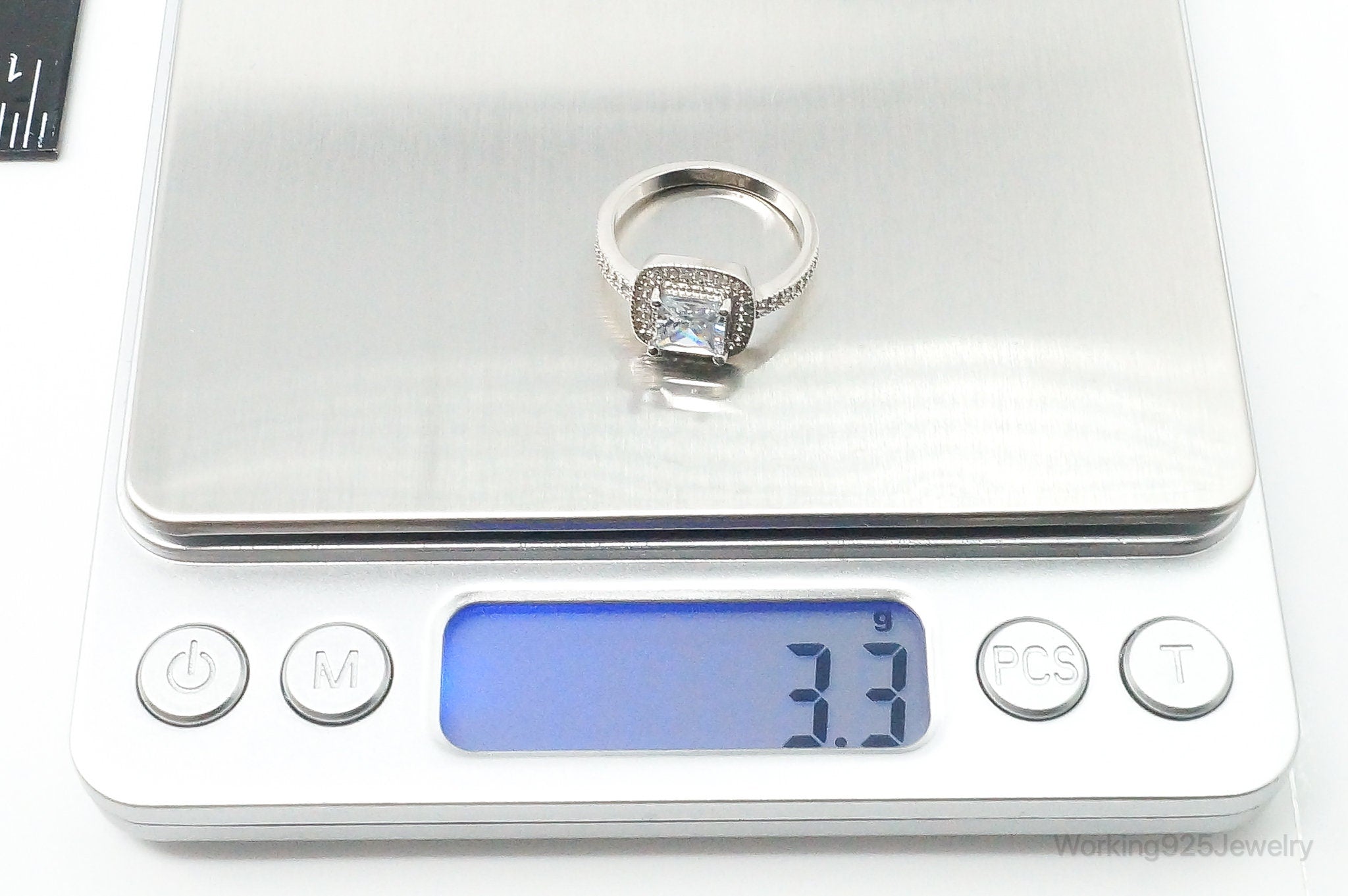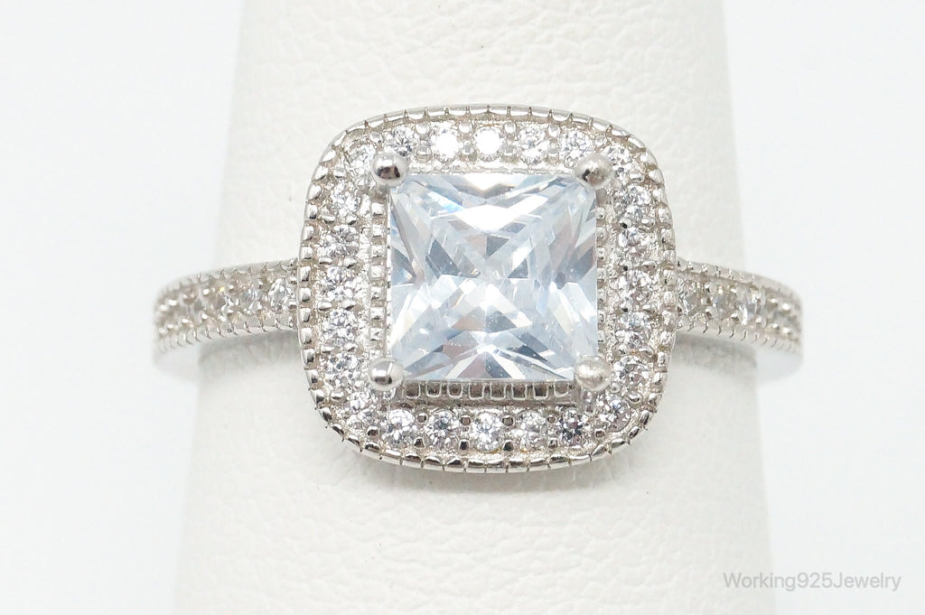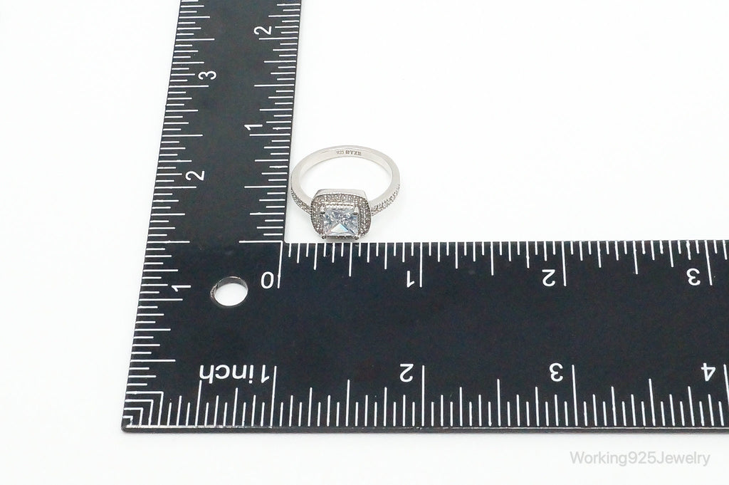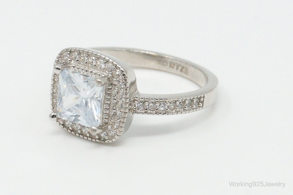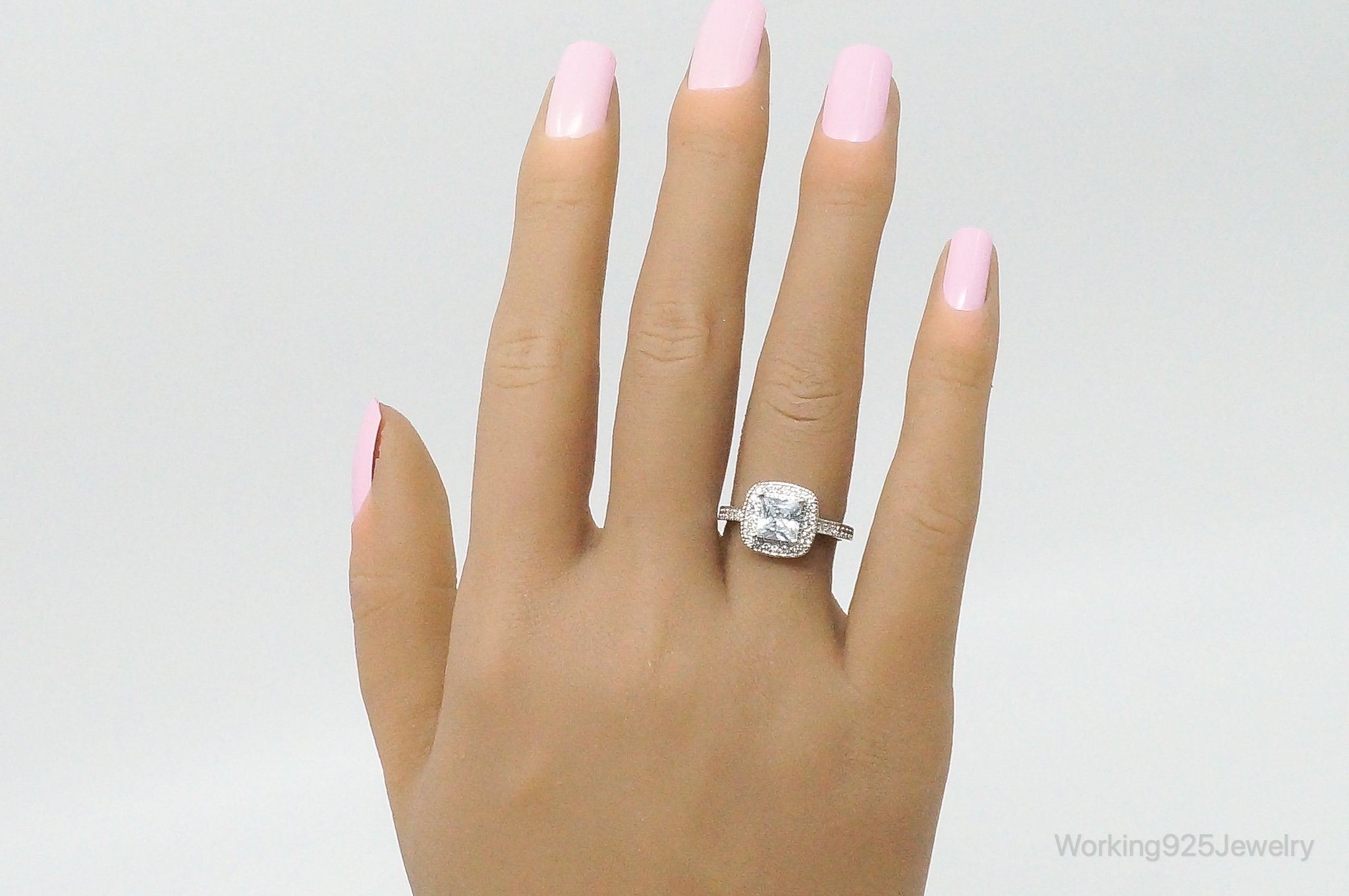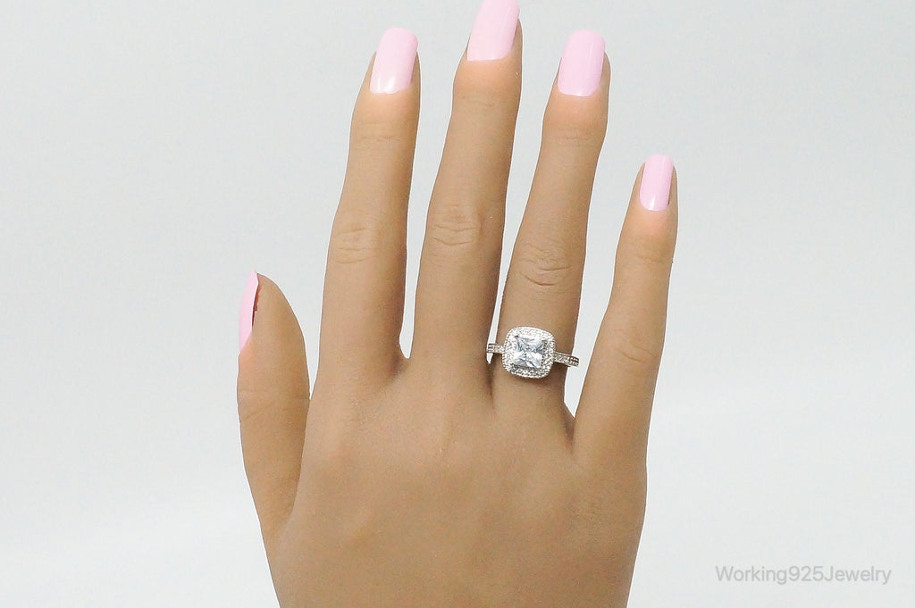 Large Cubic Zirconia Sterling Silver Ring - Size 6.75