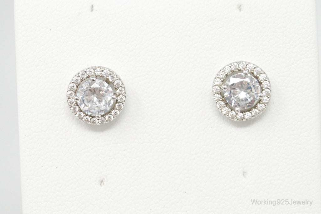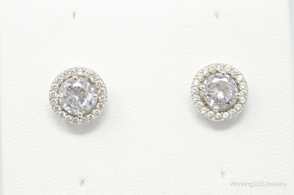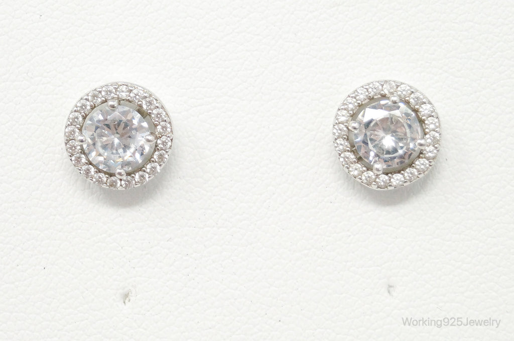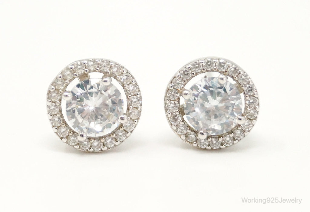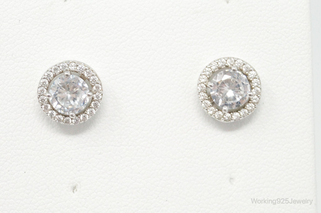 Large Cubic Zirconia Sterling Silver Stud Post Earrings