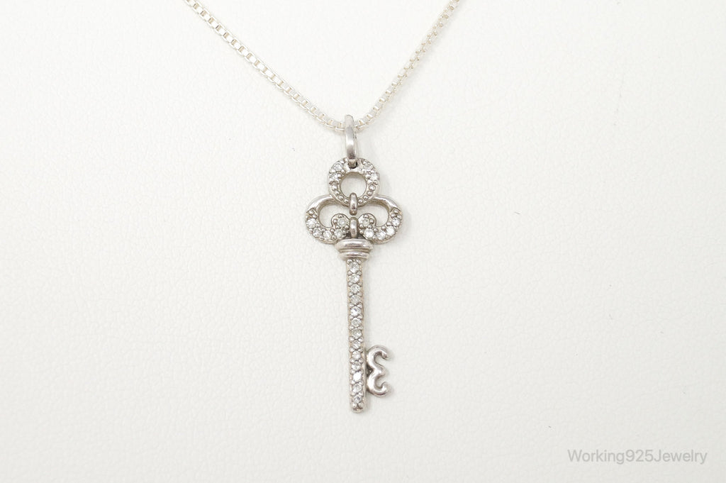 Large Designer Cubic Zirconia Key Sterling Silver Necklace