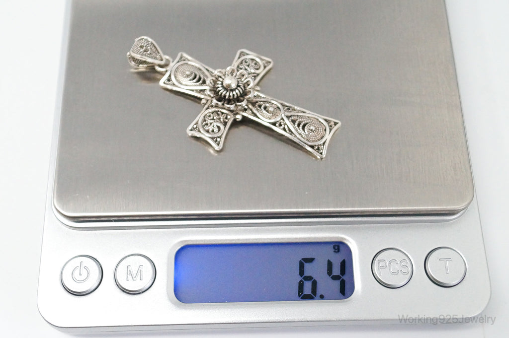 Large Designer DGS Intricate Filigree Cross Sterling Silver Pendant