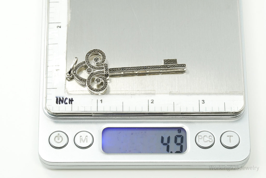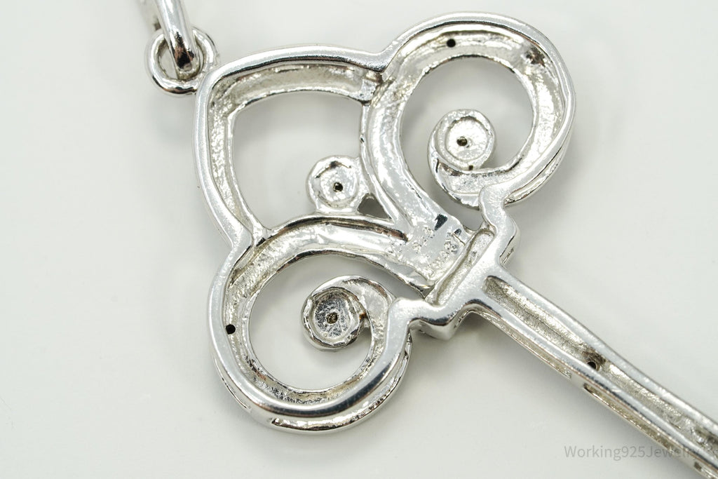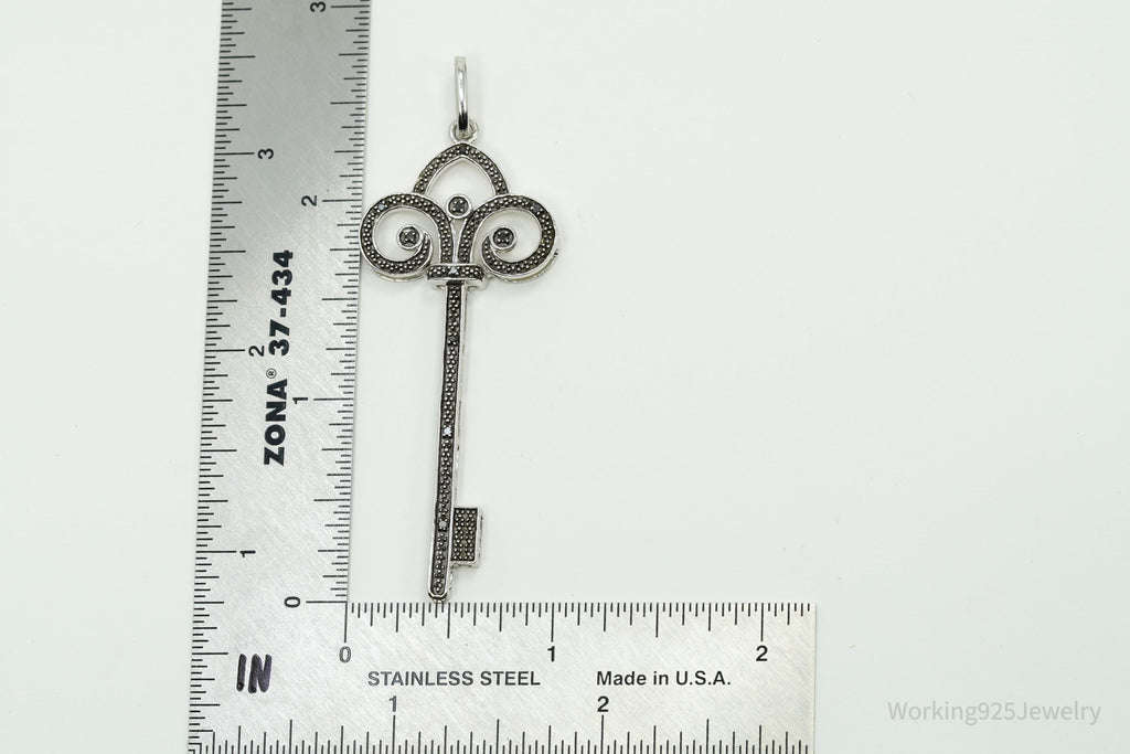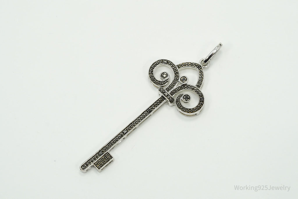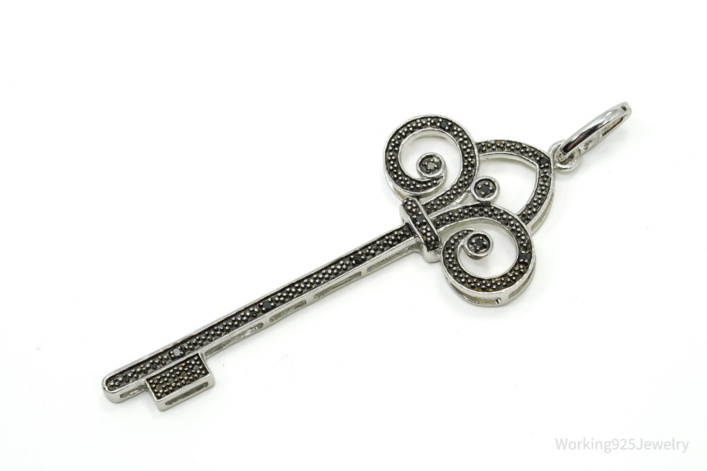 Large Designer JWBR Black Diamond Skelton Key Sterling Silver Necklace Pendant