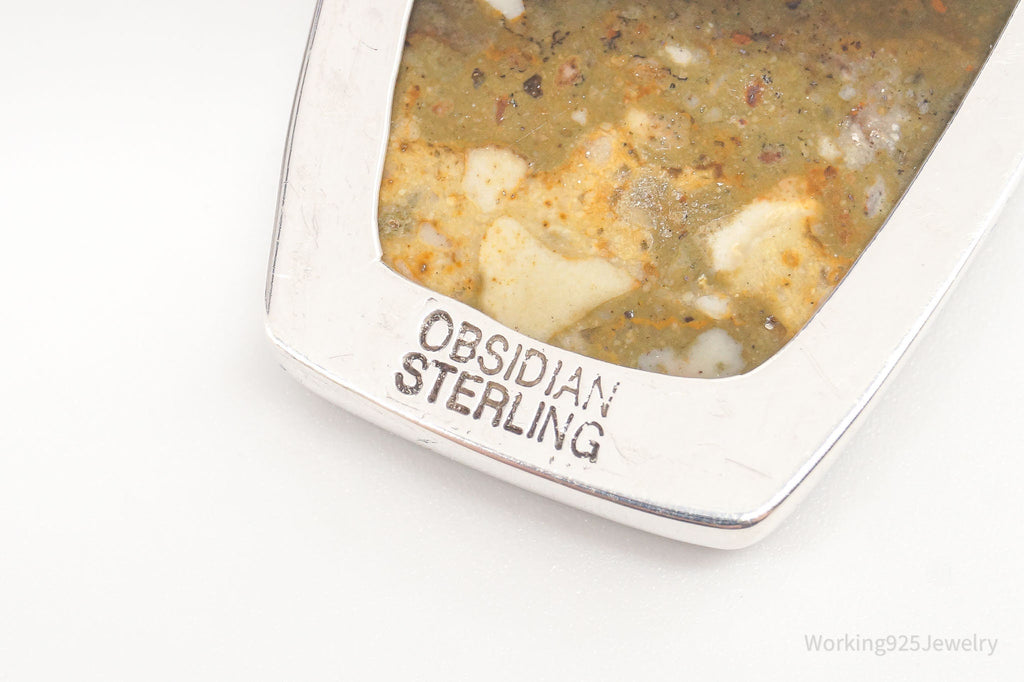 Large Designer OBSIDIAN Jasper Sterling Silver Pendant