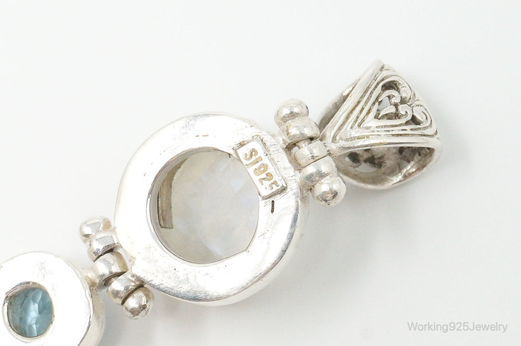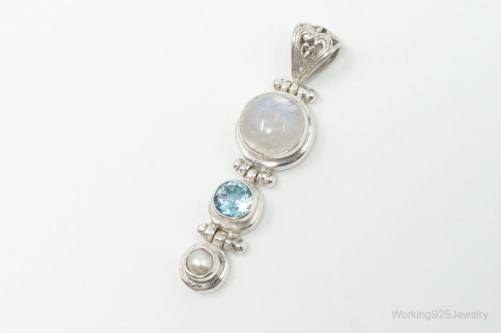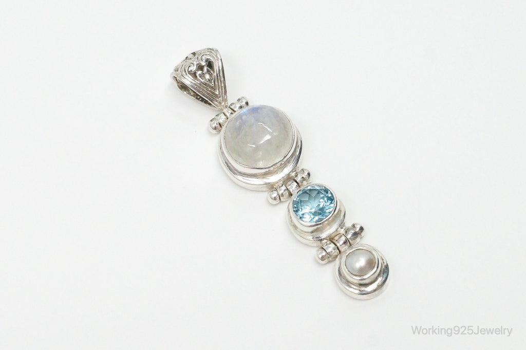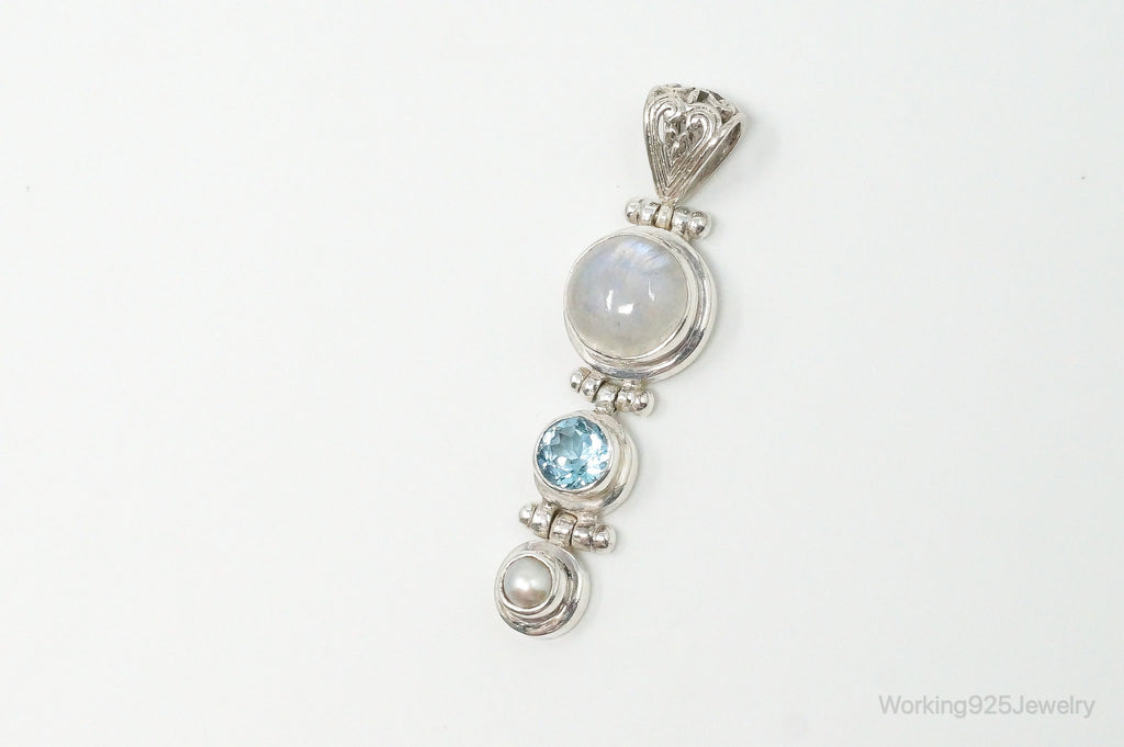 Large Designer SJ Blue Topaz Moonstone Pearl Sterling Necklace Pendant