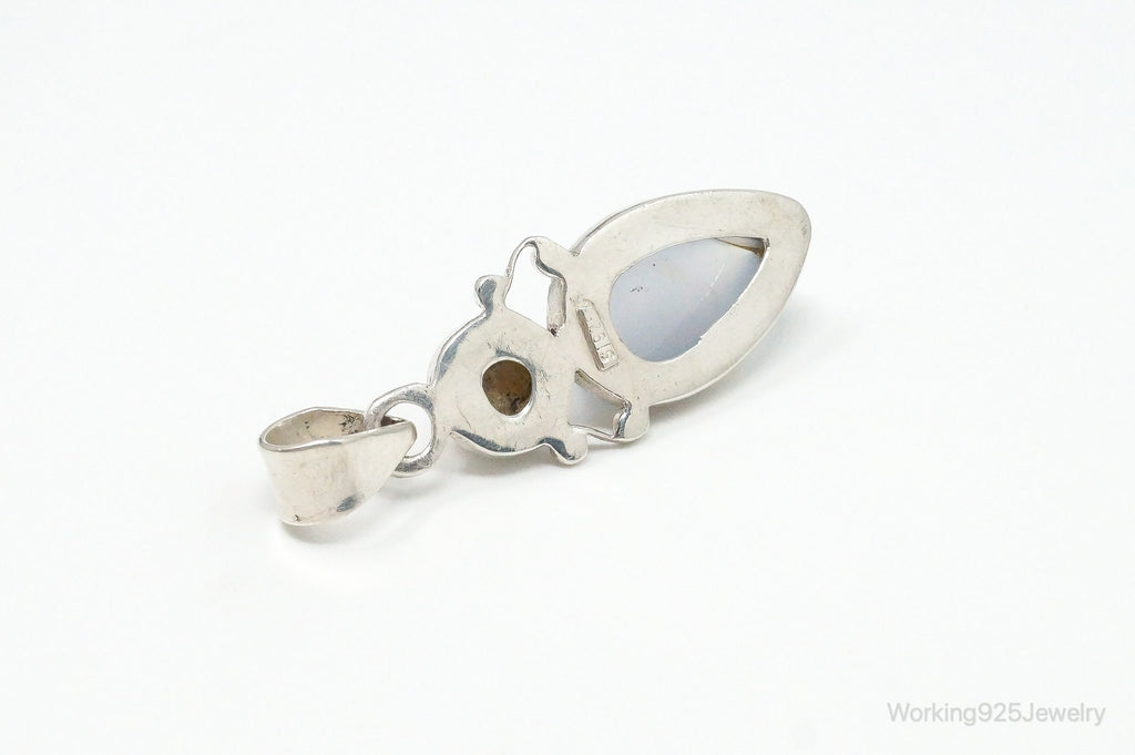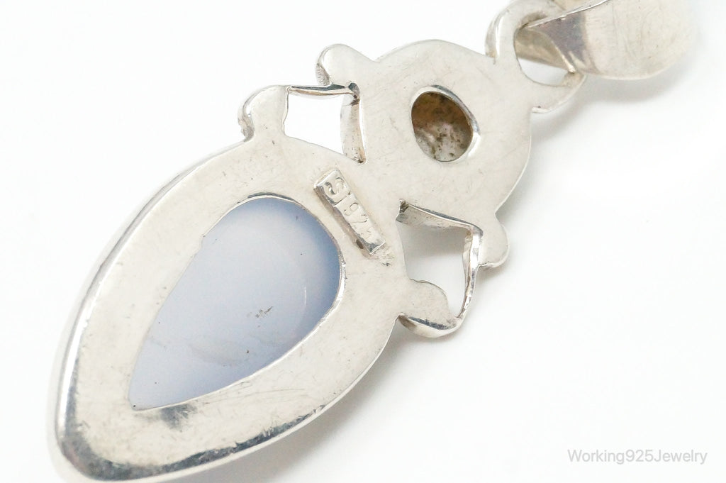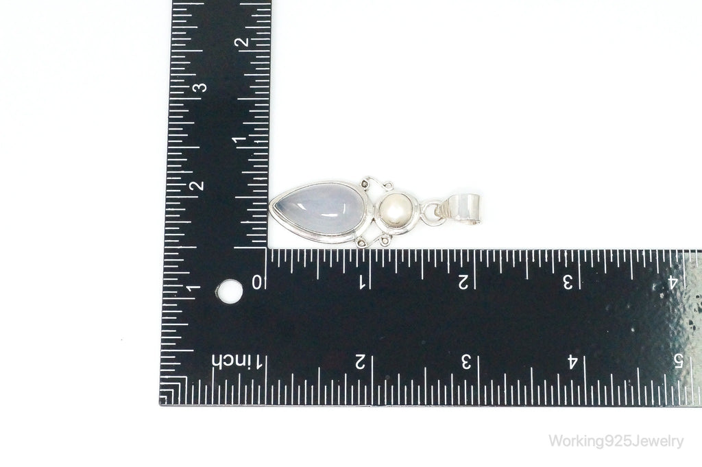Large Designer Supreme Jewelers Blue Chalcedony Pearl Sterling Necklace Pendant