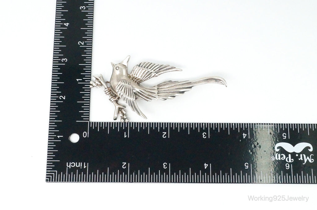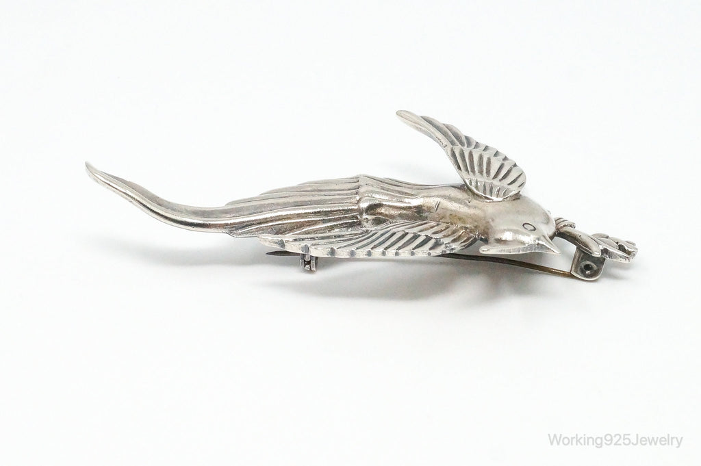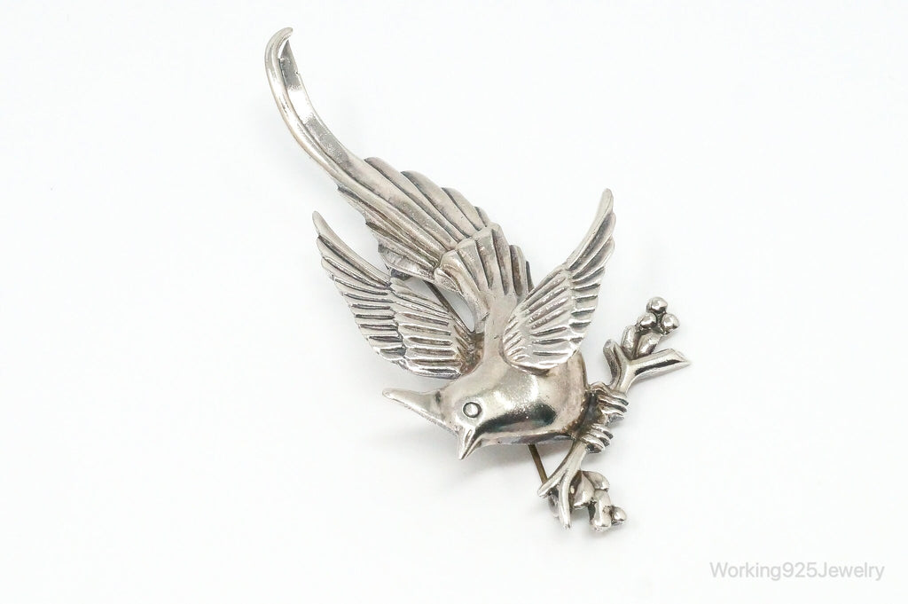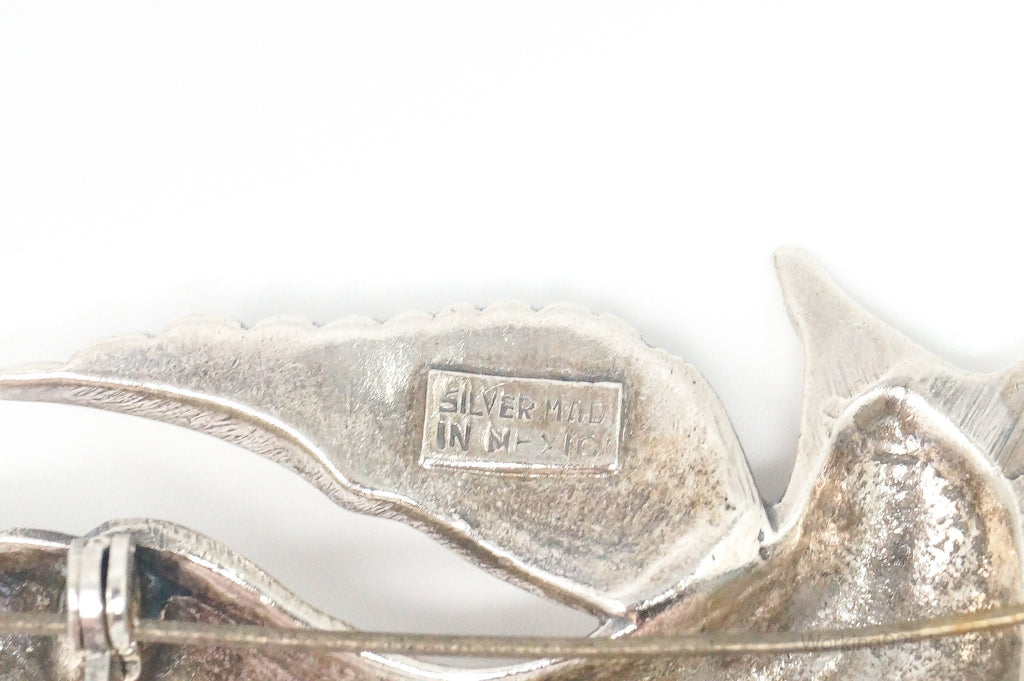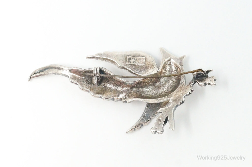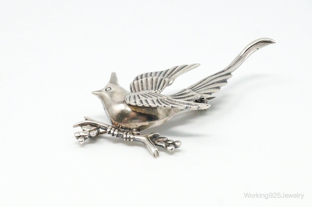 Large Heavy Vintage Mexico Perched Bird Silver Brooch Pin