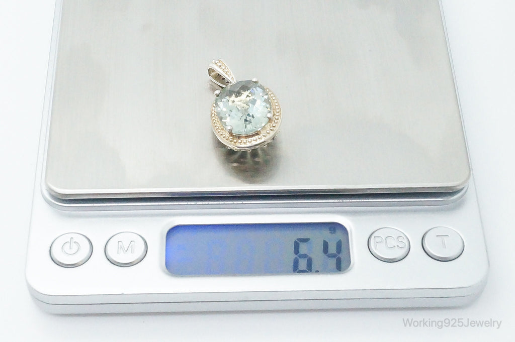 Large Prasiolite Cubic Zirconia Sterling Silver Necklace Pendant