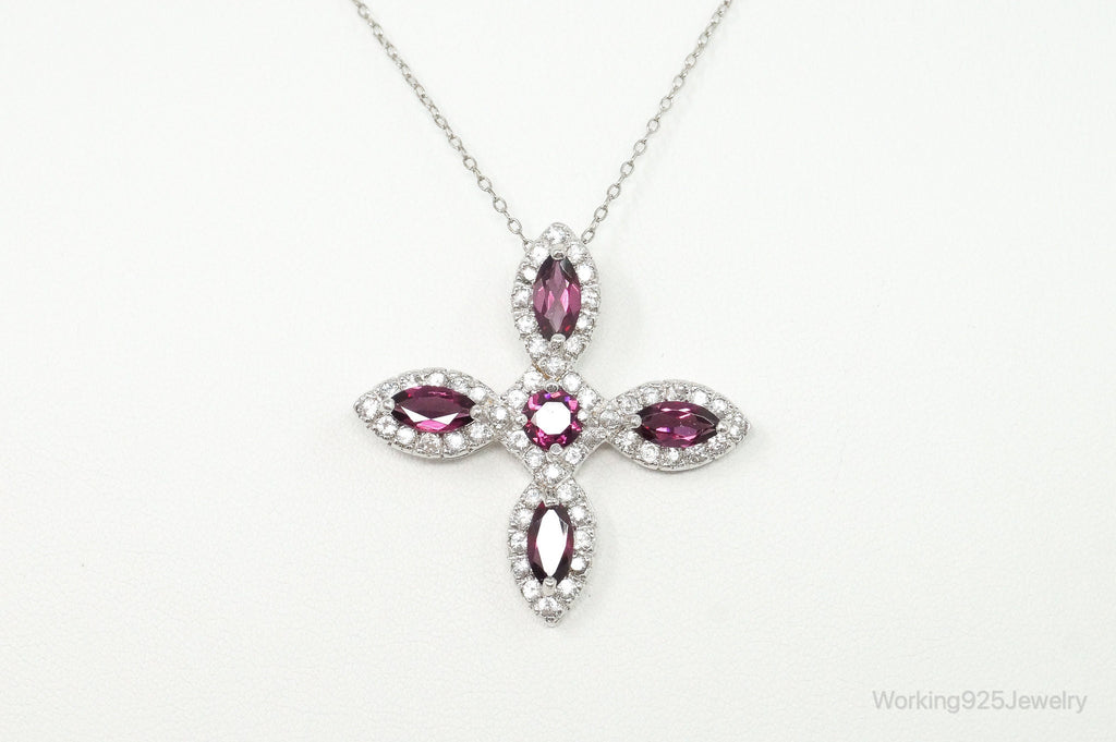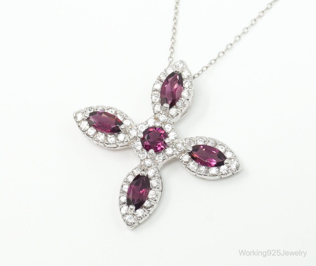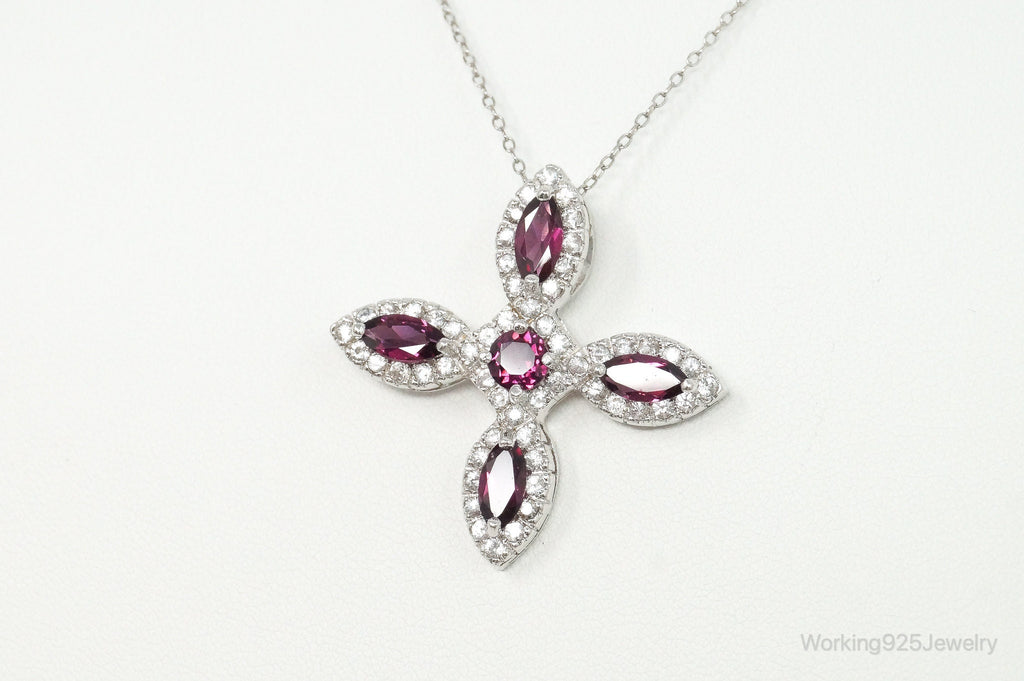 Large Rhodolite Garnet Cubic Zirconia Sterling Silver Necklace