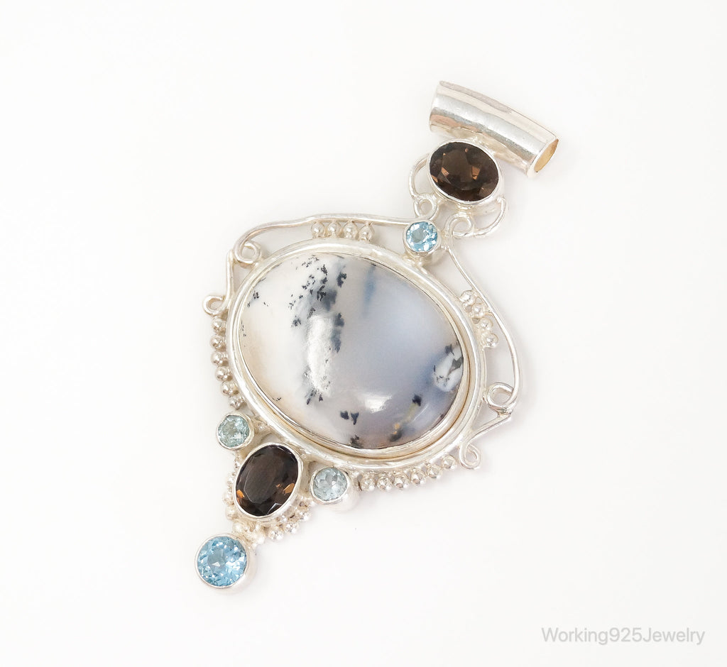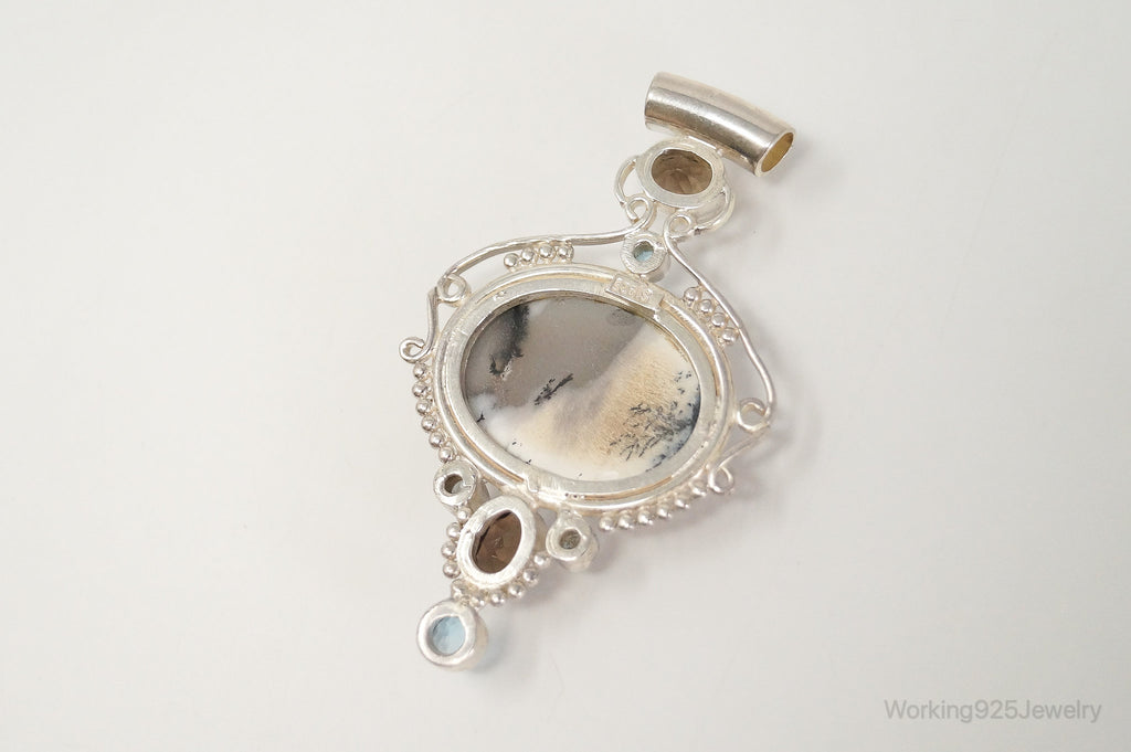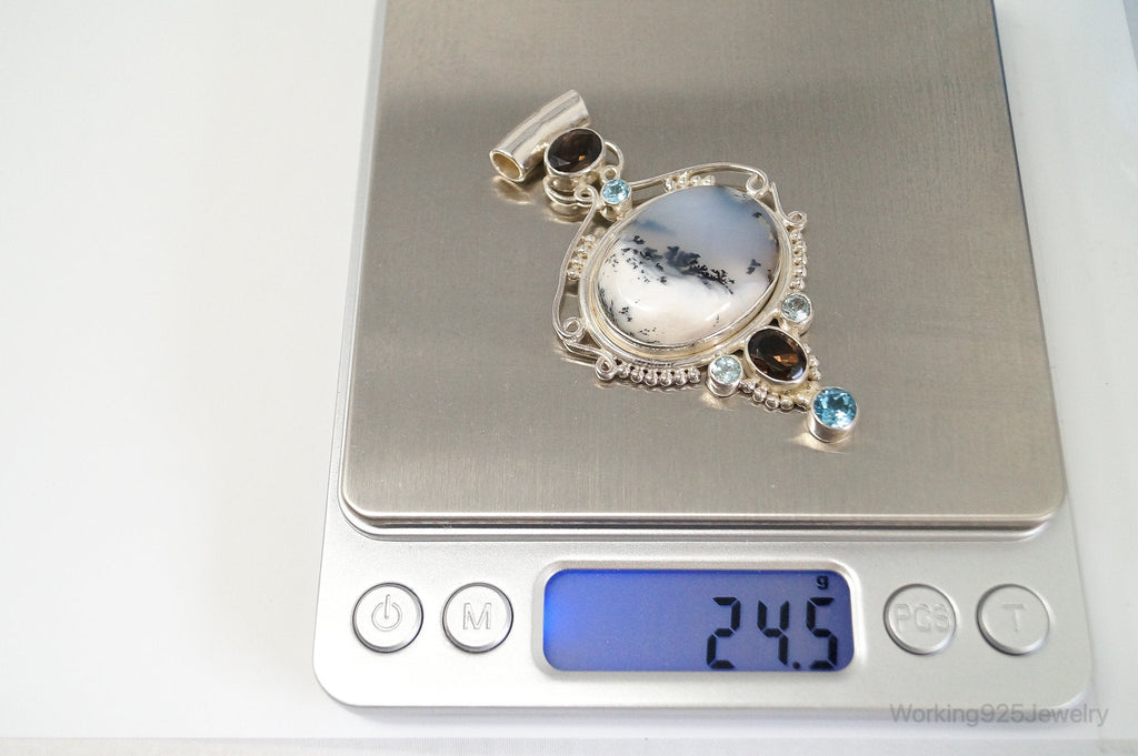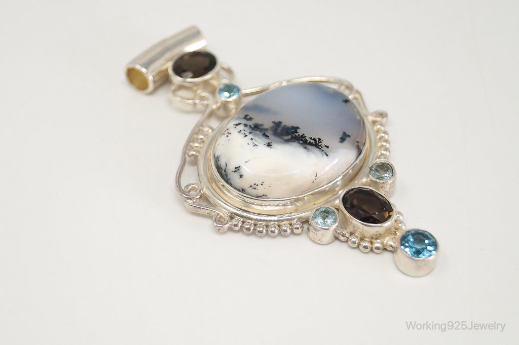 Large SAJEN Dendritic Agate Smoky Topaz Blue Topaz Sterling Silver Pendant