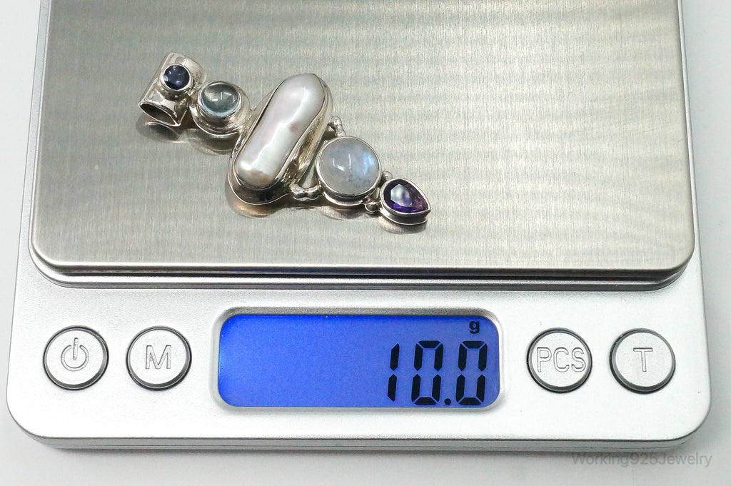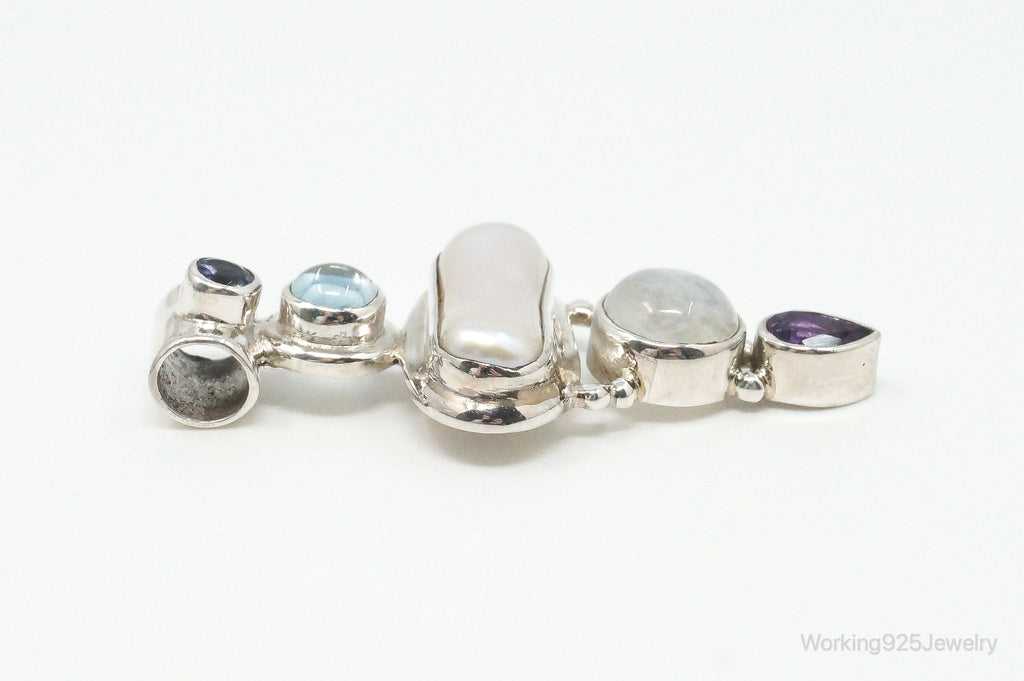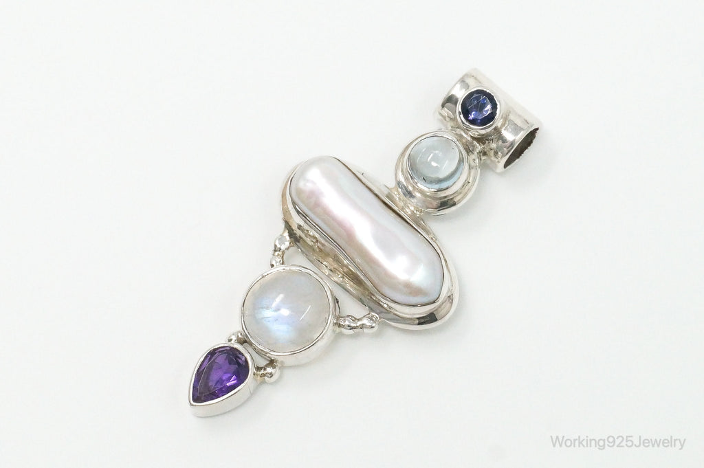 Large SJ Amethyst Blue Topaz Moonstone Iolite Sterling Silver Pendant