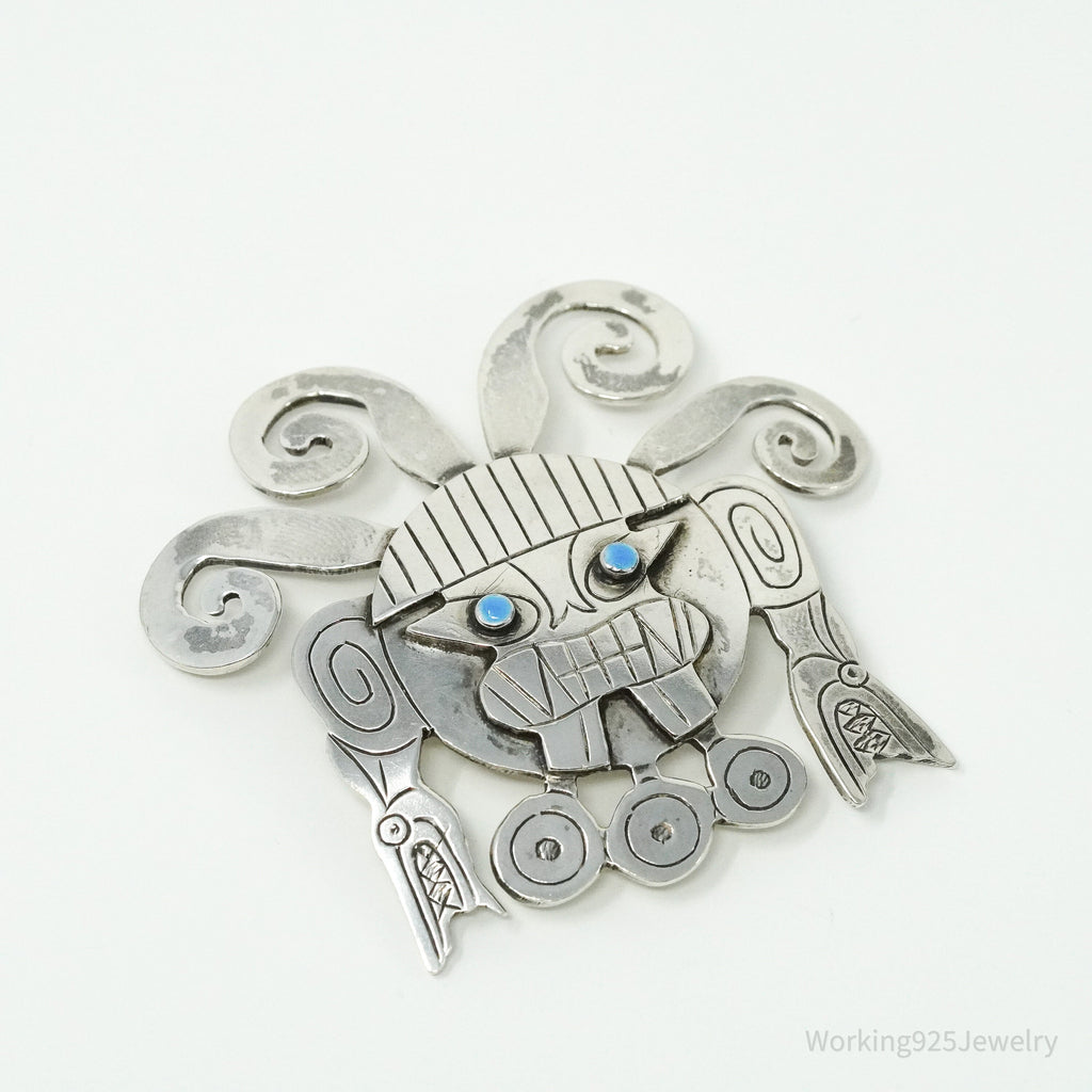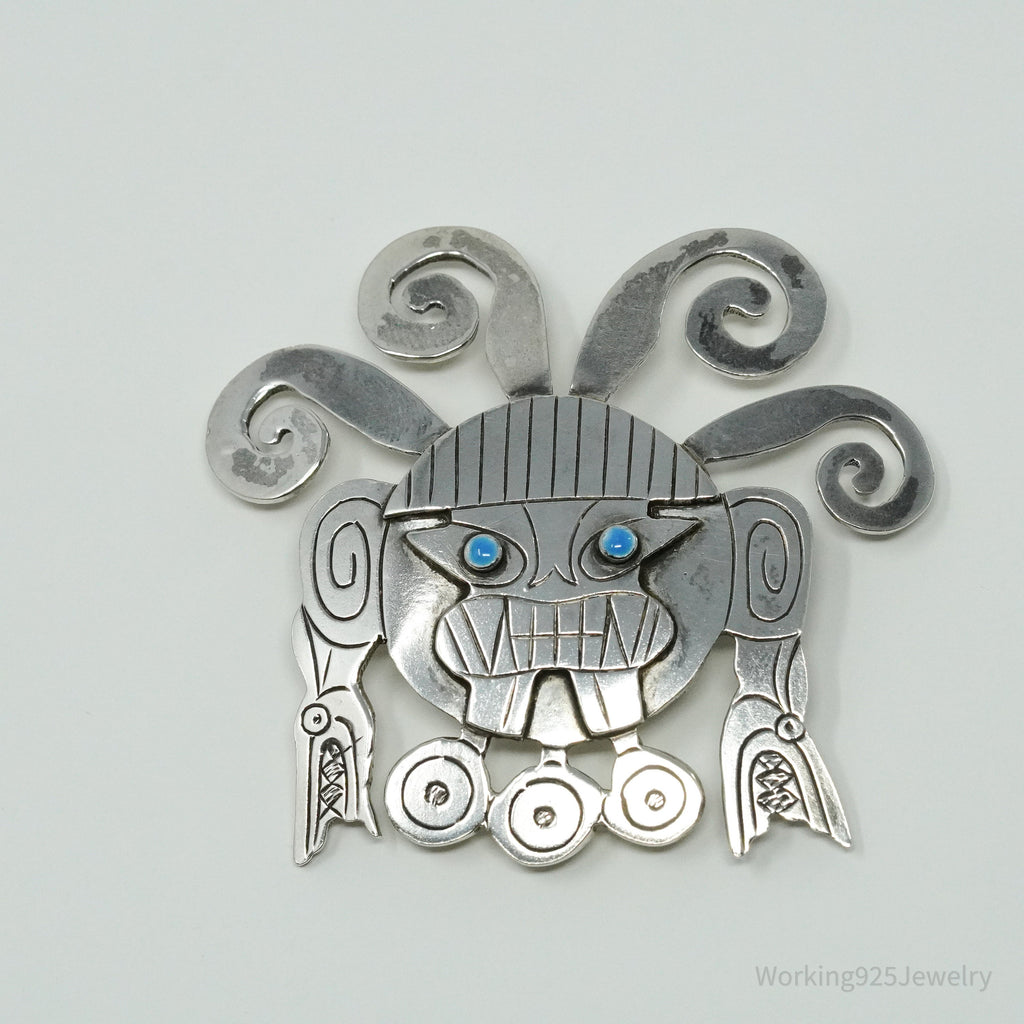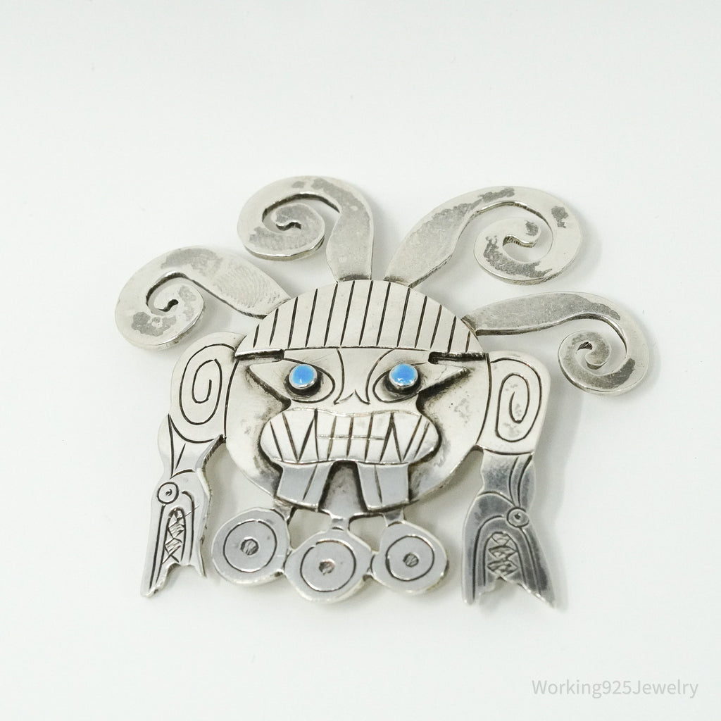 Large Vintage Aztec Mayan Sterling Silver Brooch Pin