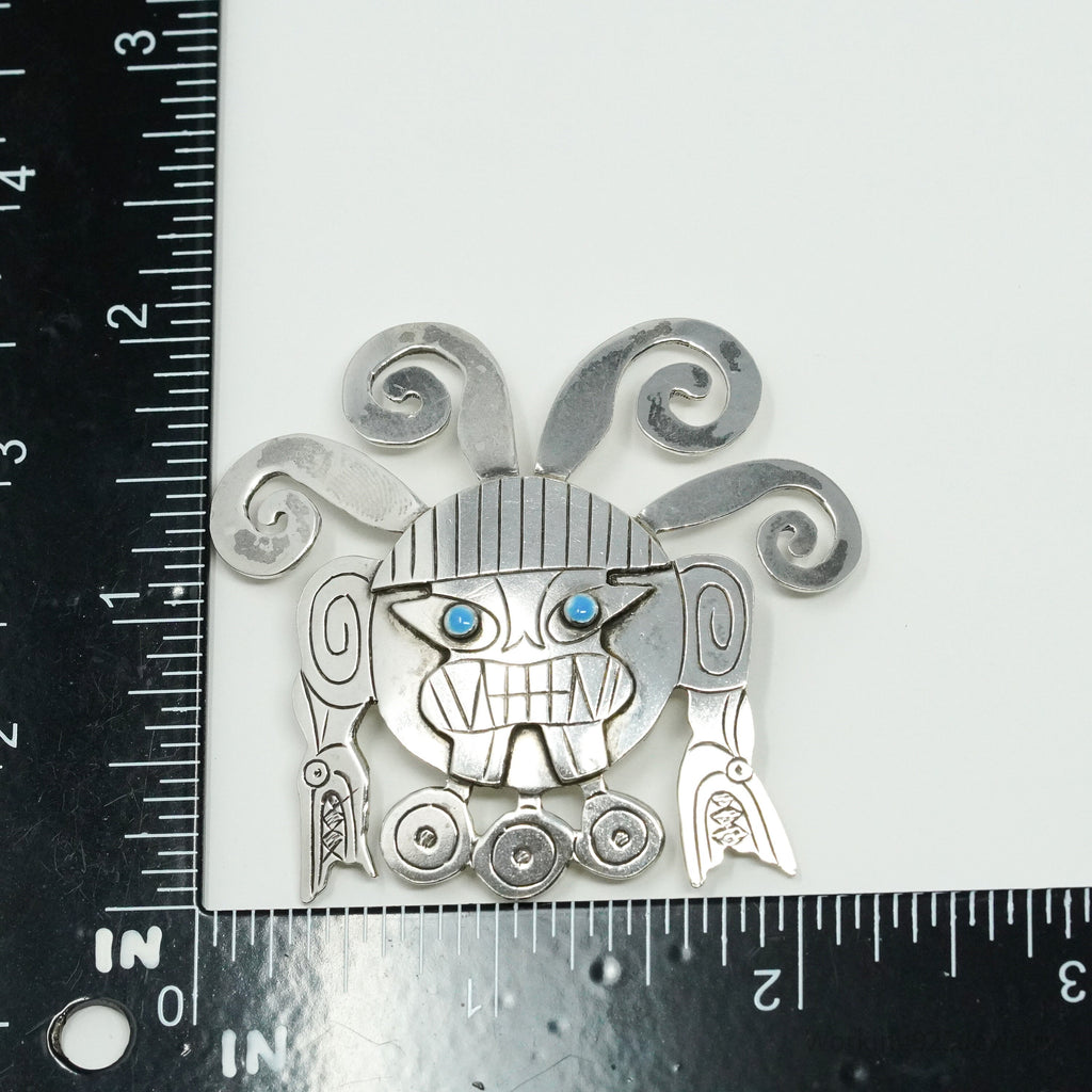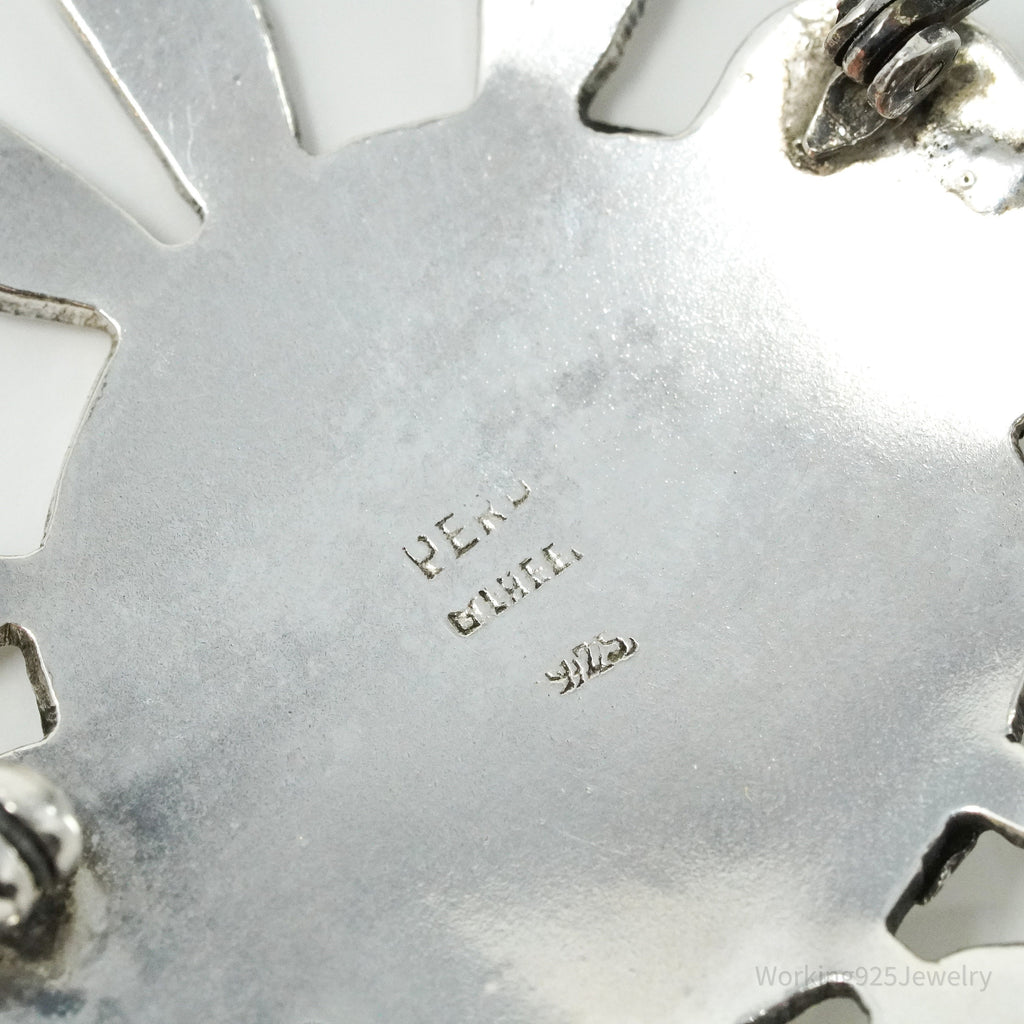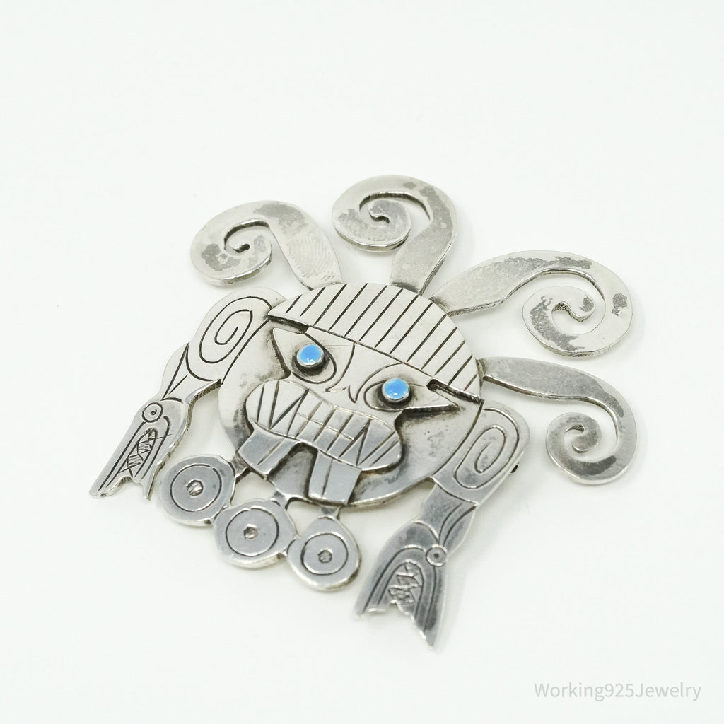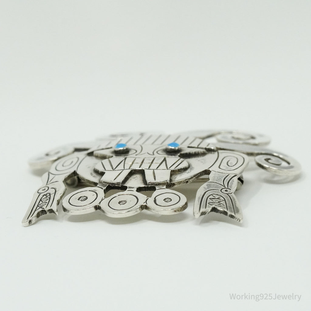 Large Vintage Aztec Mayan Sterling Silver Brooch Pin