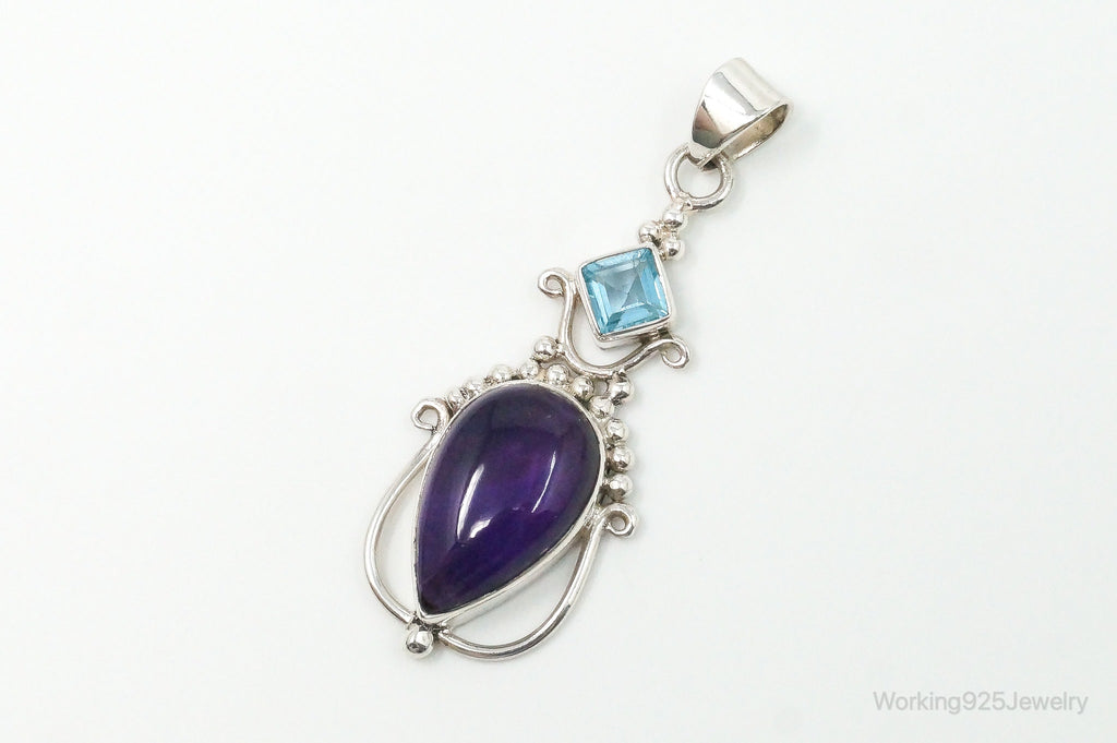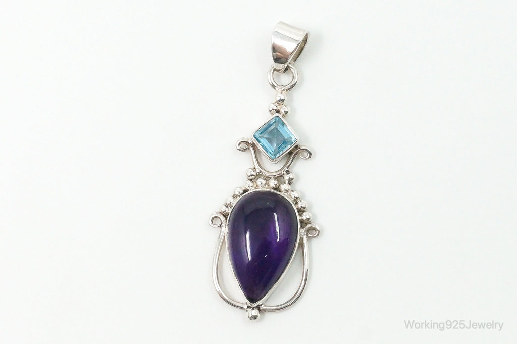 Large Vintage Blue Topaz Amethyst Sterling Silver Pendant