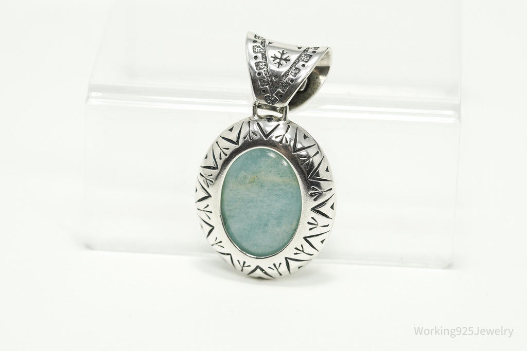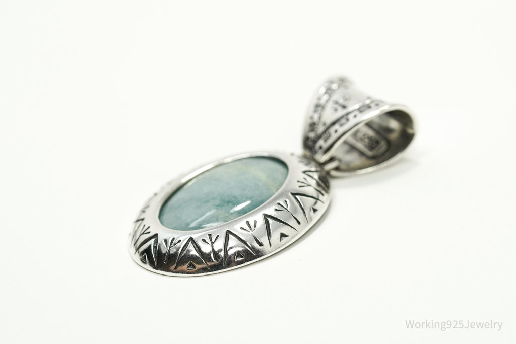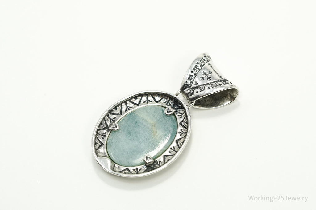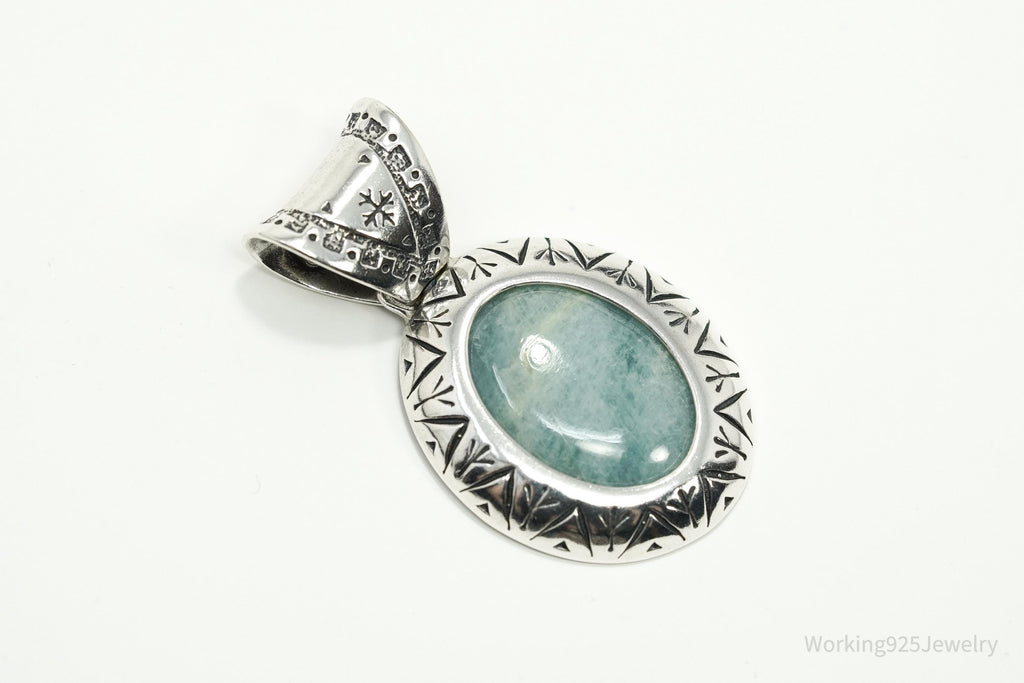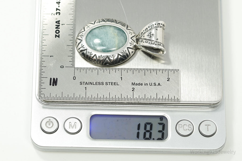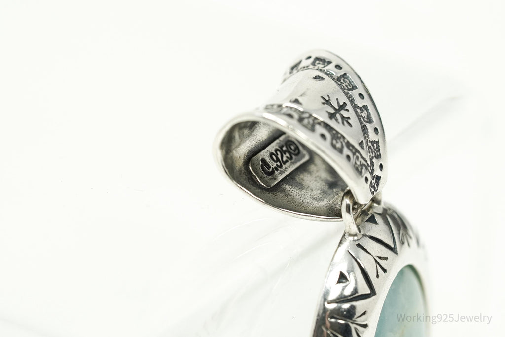 Large Vintage Carolyn Pollack Relios Milky Aquamarine Sterling Silver Pendant 2"
