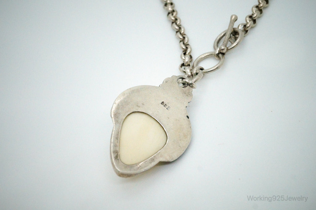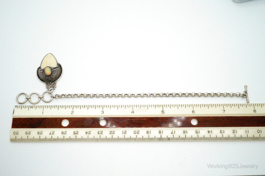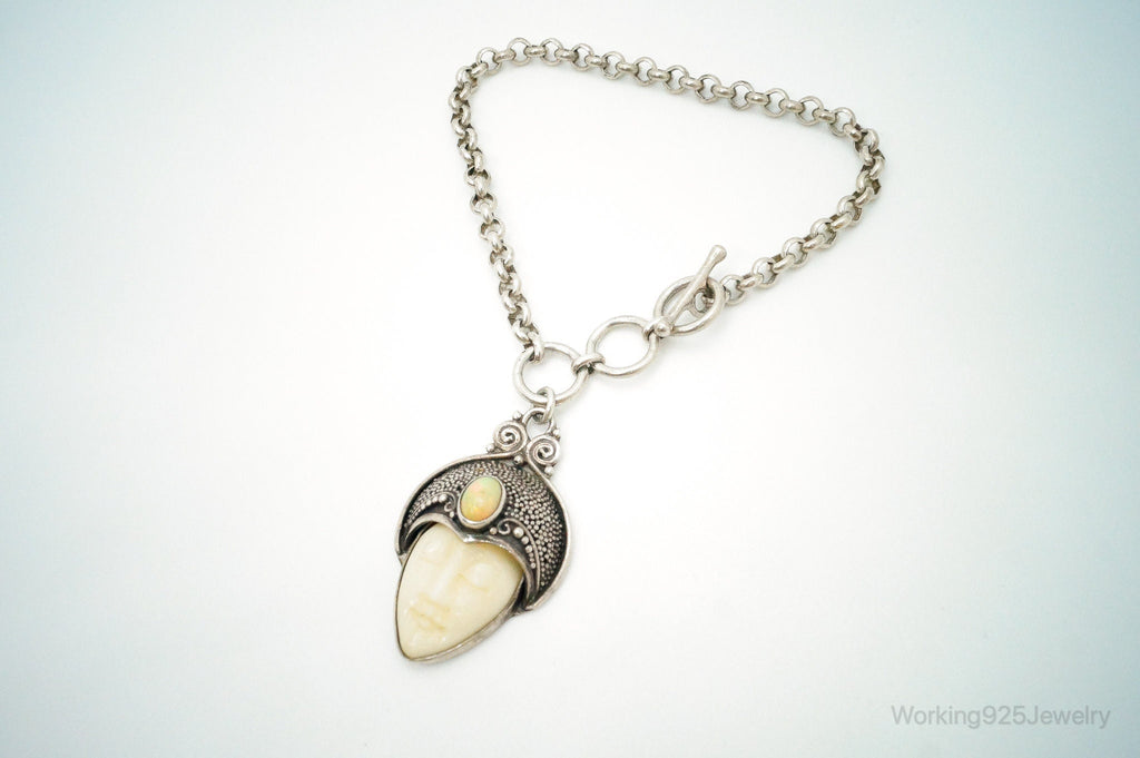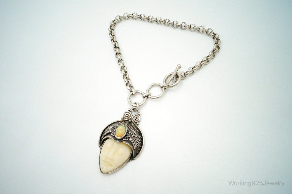 Large Vintage Carved Face Opal Sterling Silver Bracelet