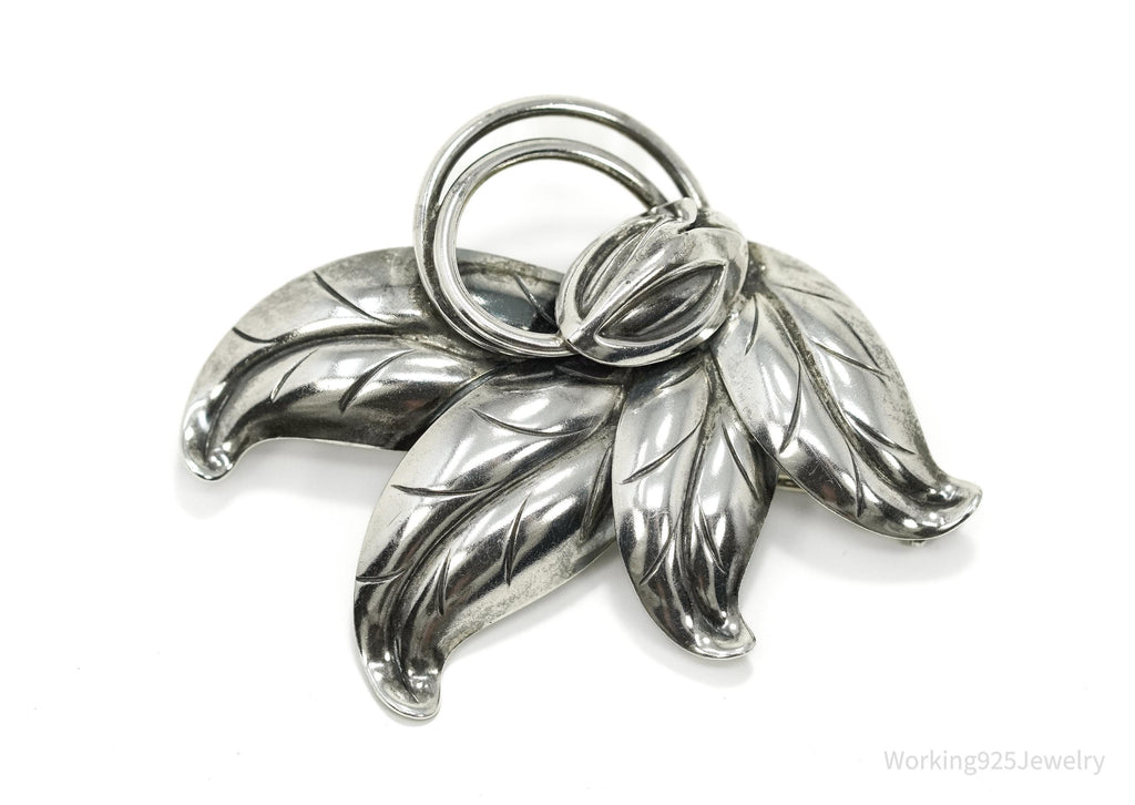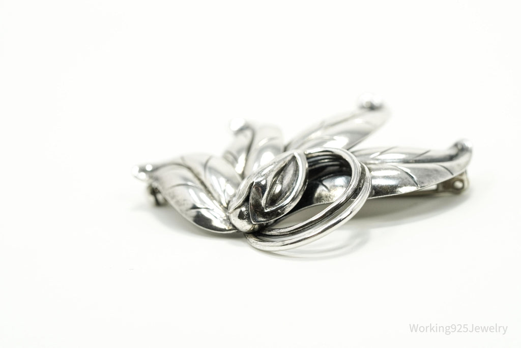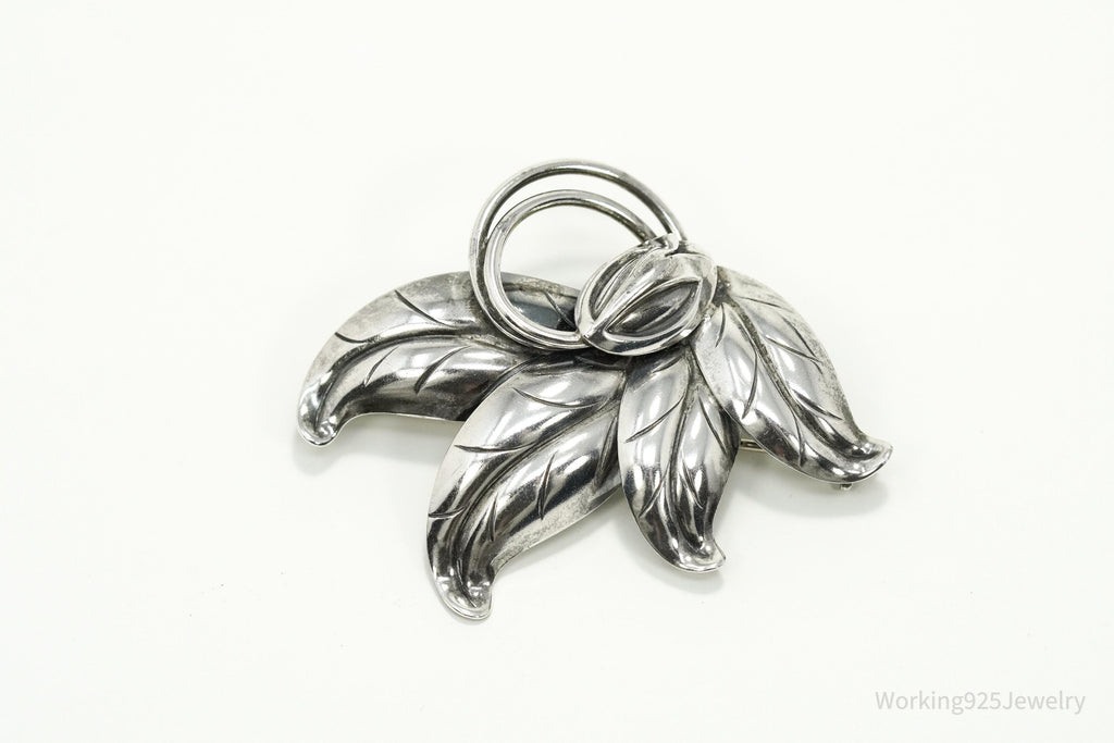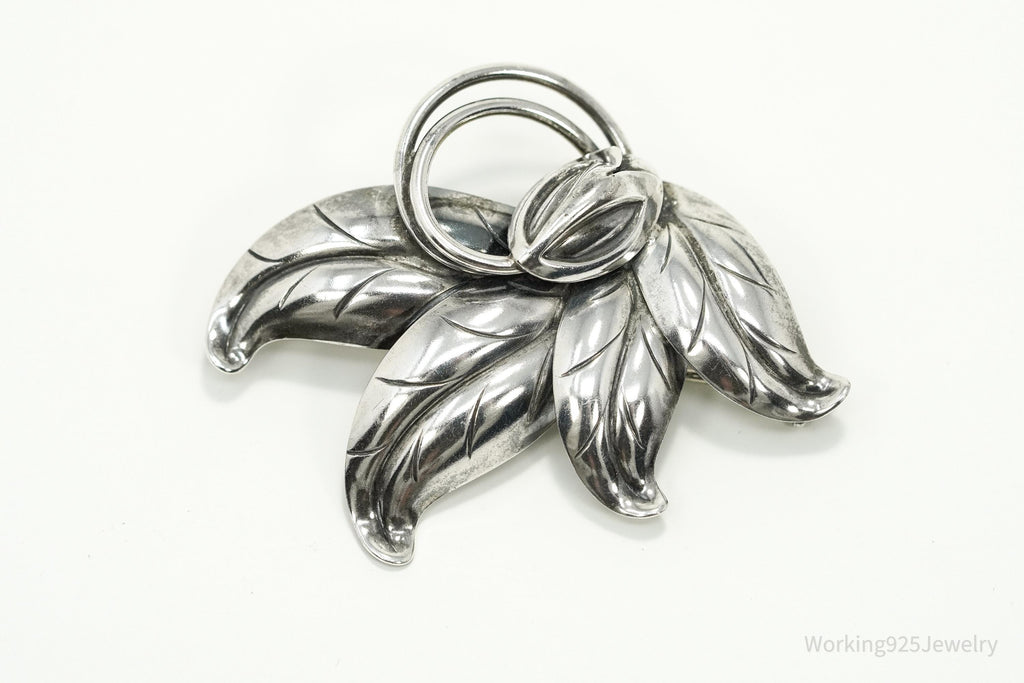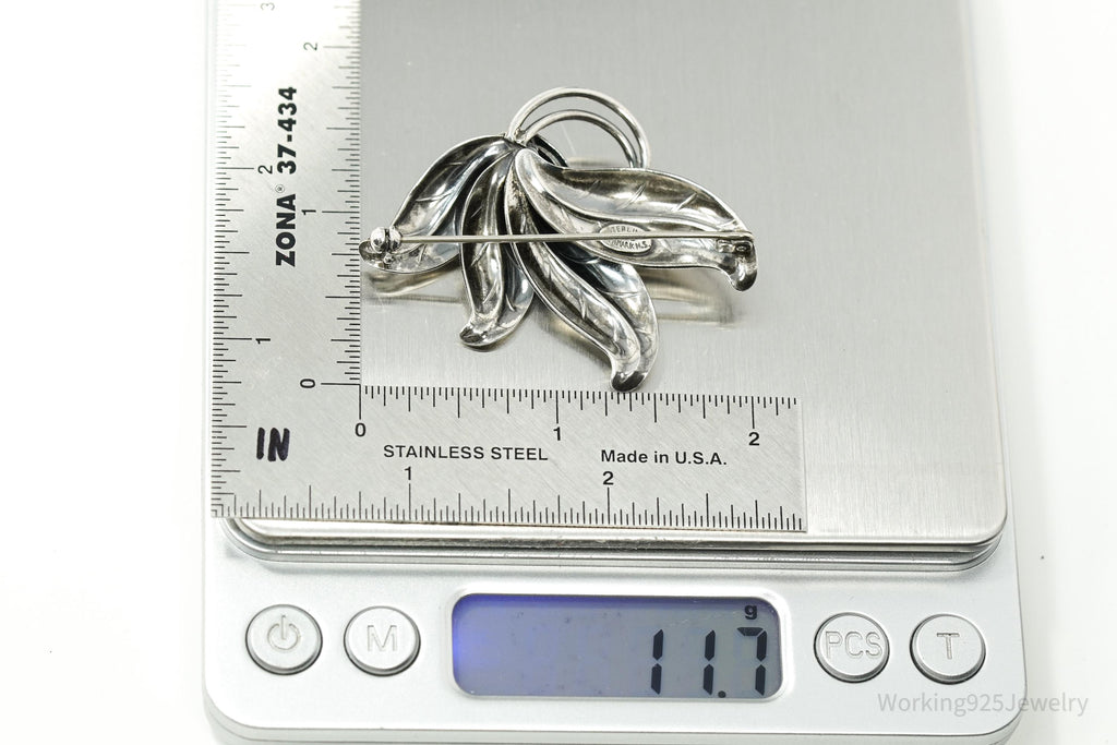 Large Vintage Denmark Hermann Siersbol Modernist Floral Sterling Silver Pin Brooch