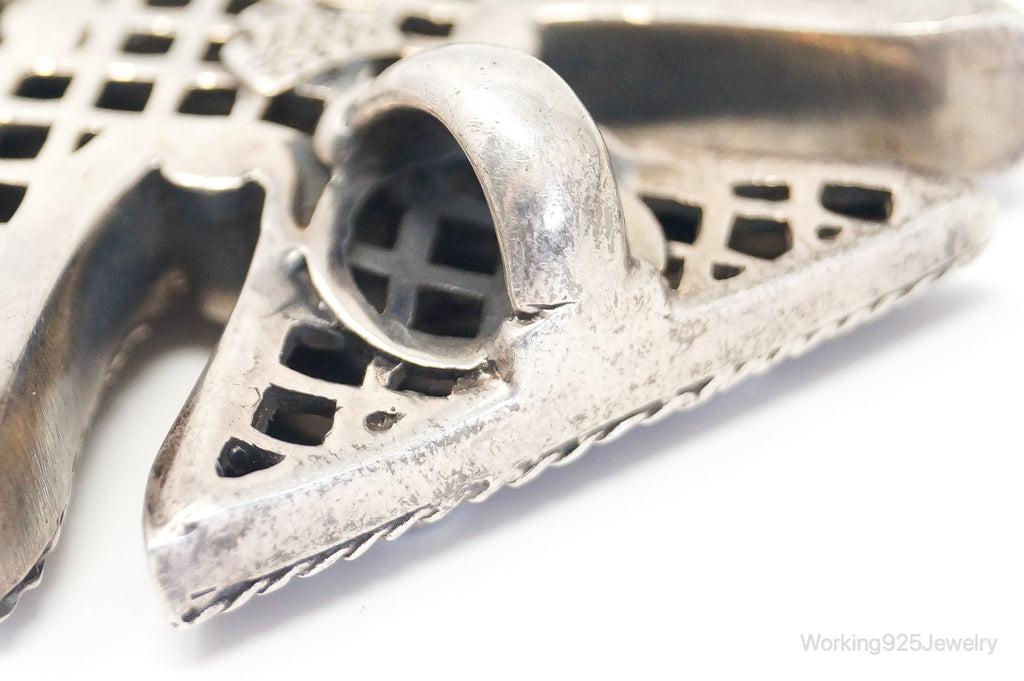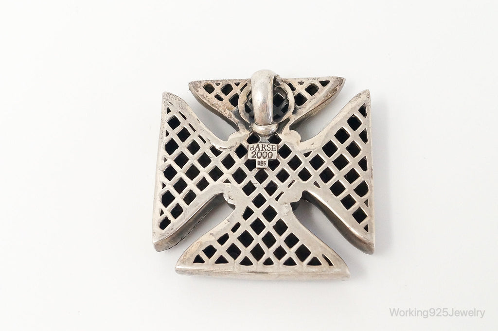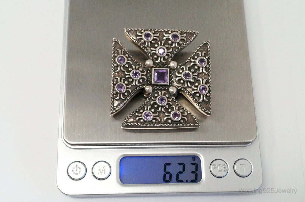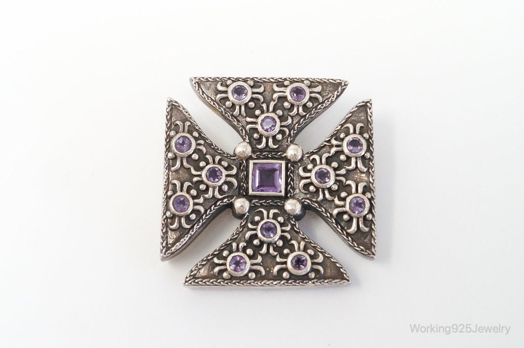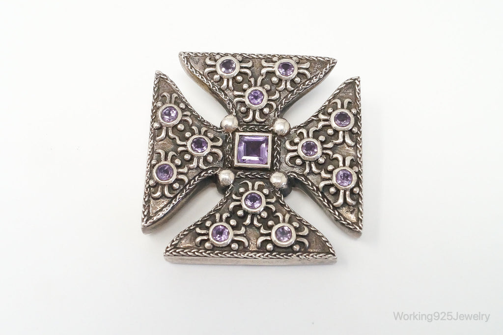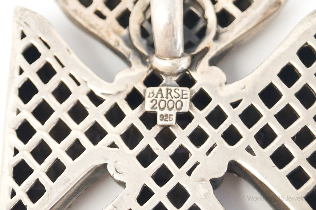 Large Vintage Designer Barse 2000 Amethyst Cross Sterling Silver Pendant