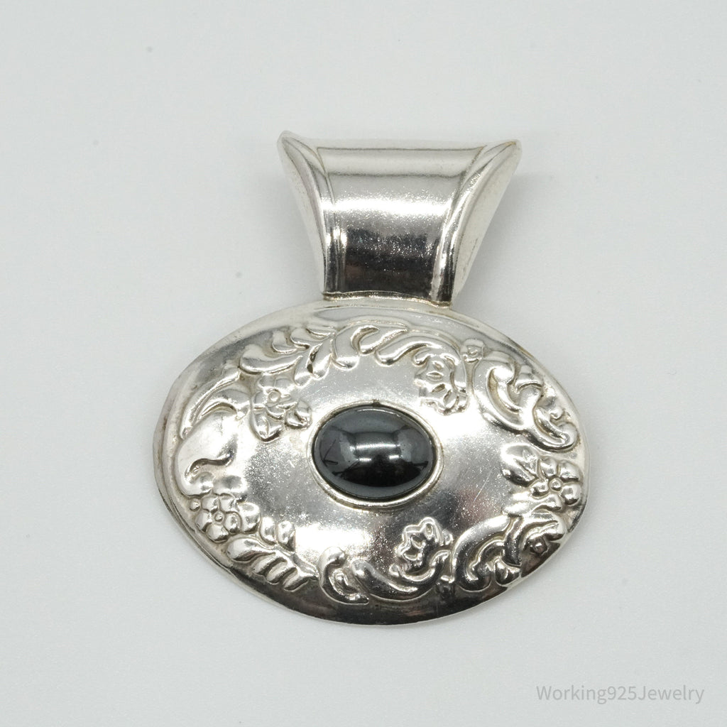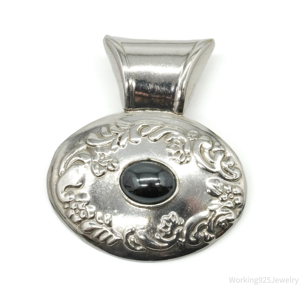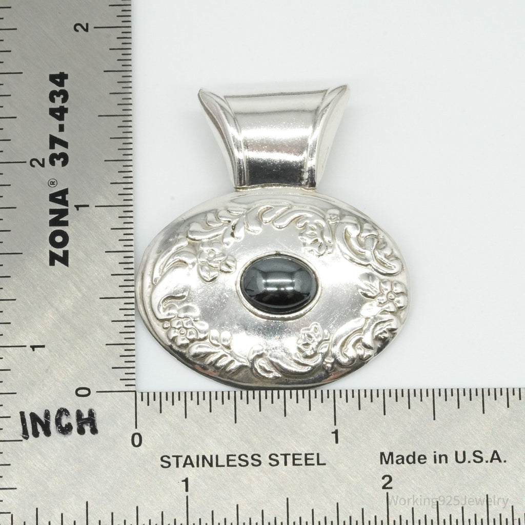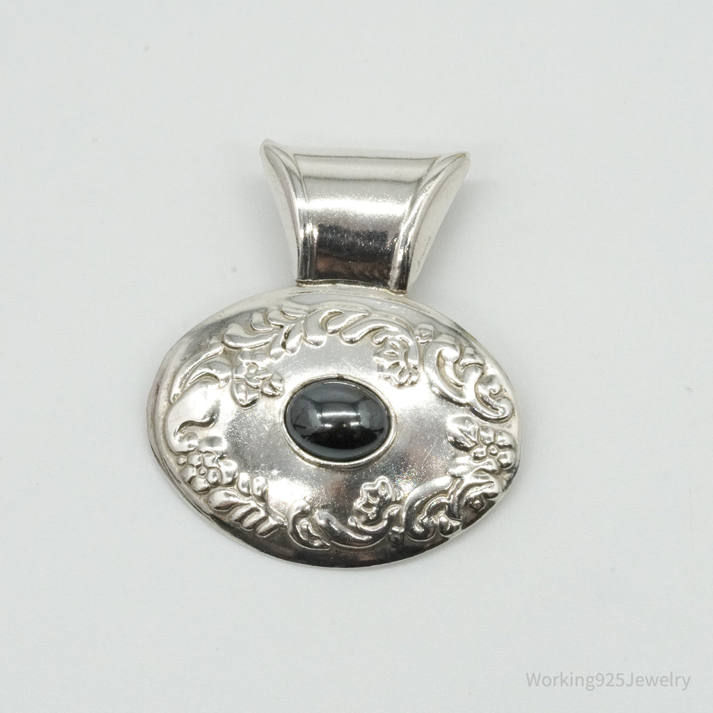 Large Vintage Mexico Hematite Floral Sterling Silver Pendant