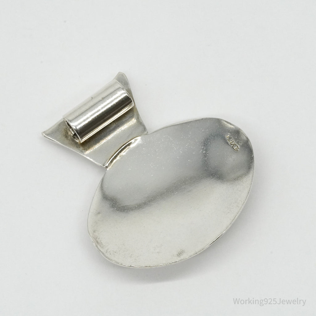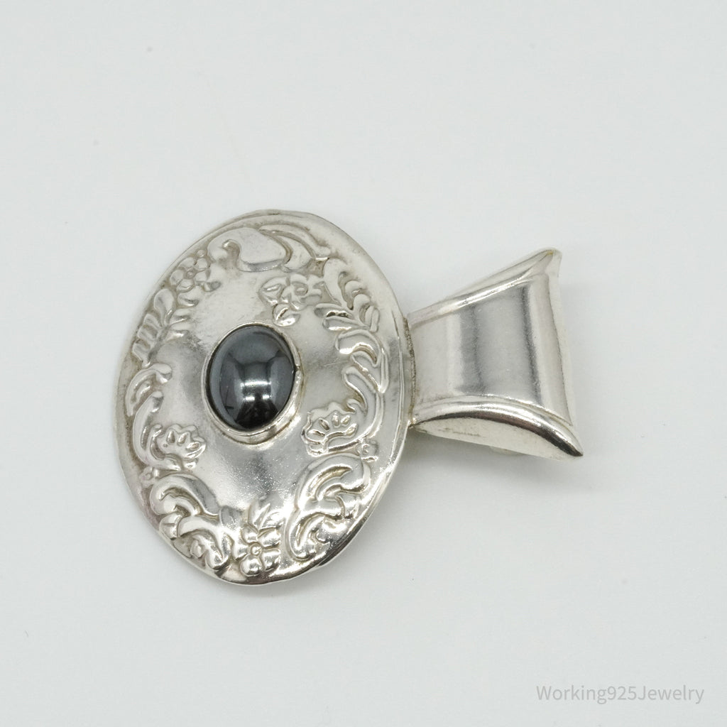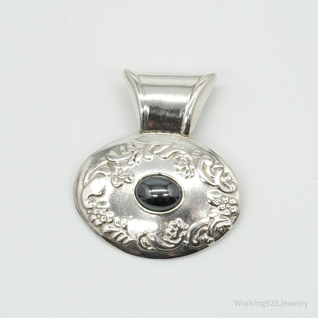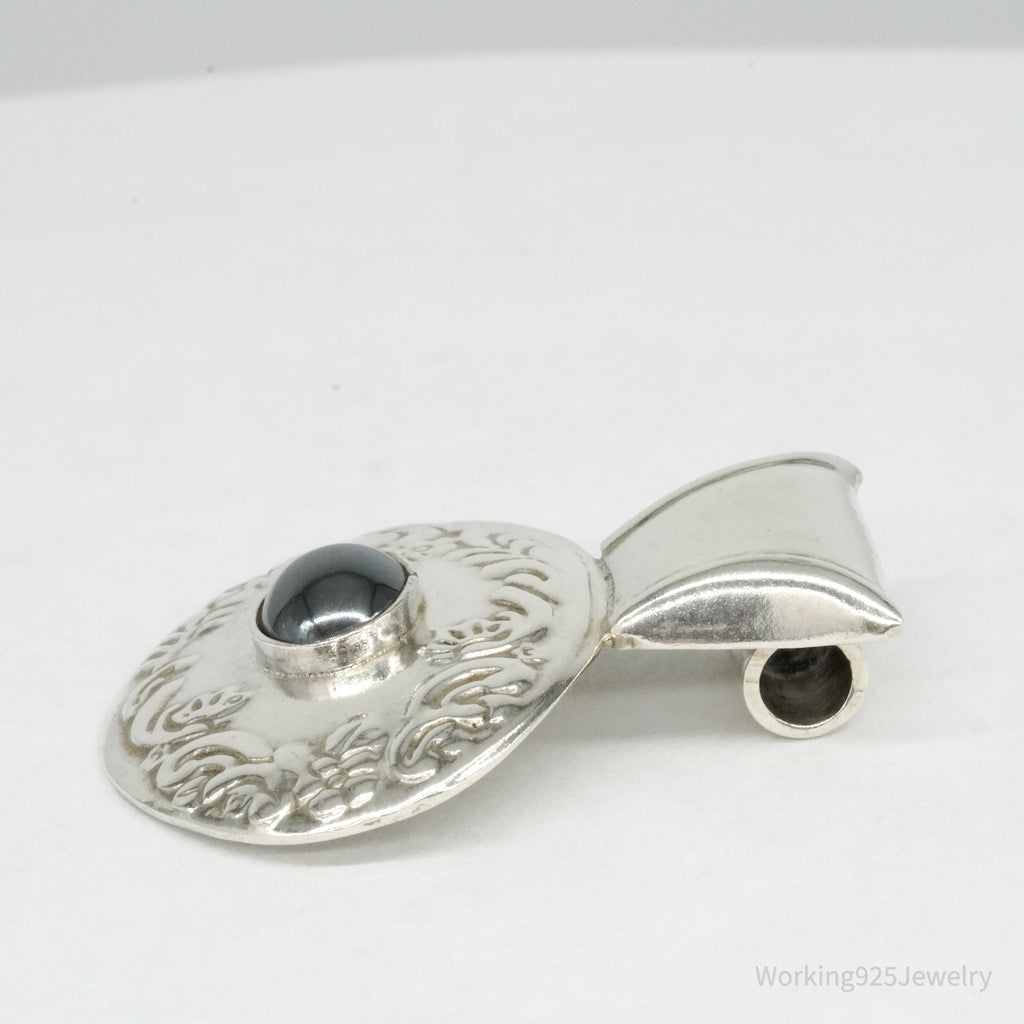 Large Vintage Mexico Hematite Floral Sterling Silver Pendant