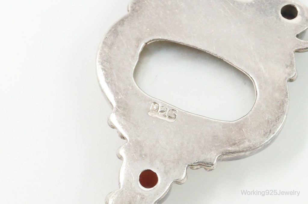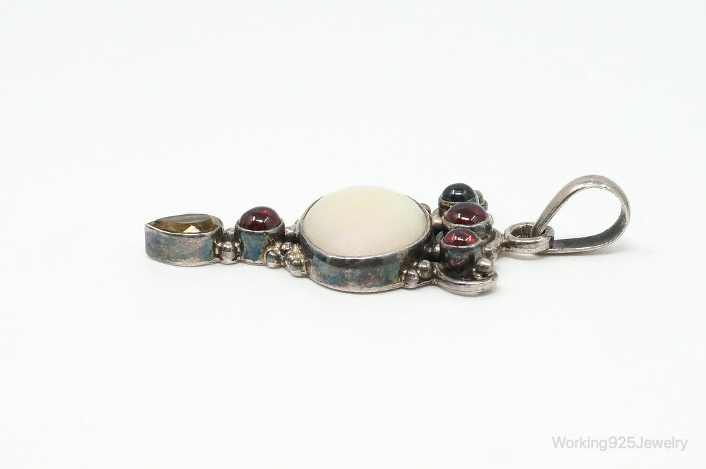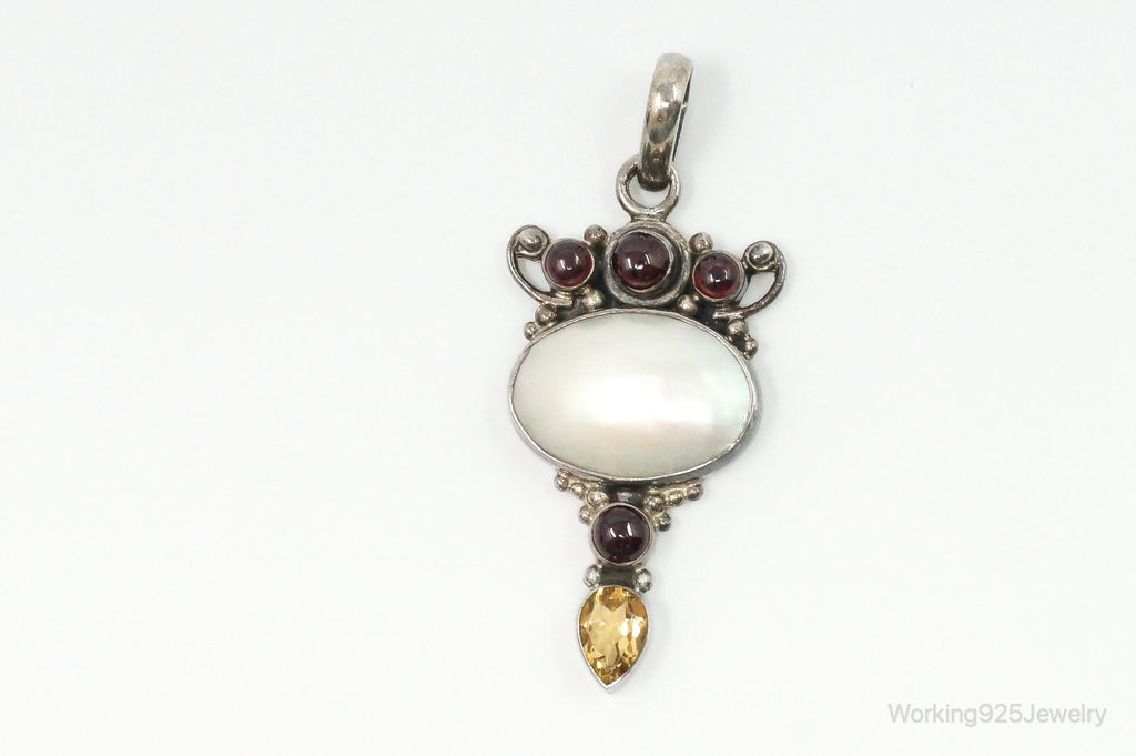 Large Vintage Mothe Of Pearl Citrine Garnet Sterling Silver Pendant