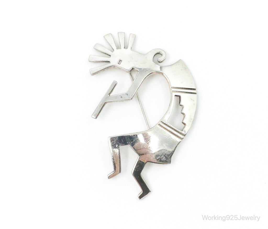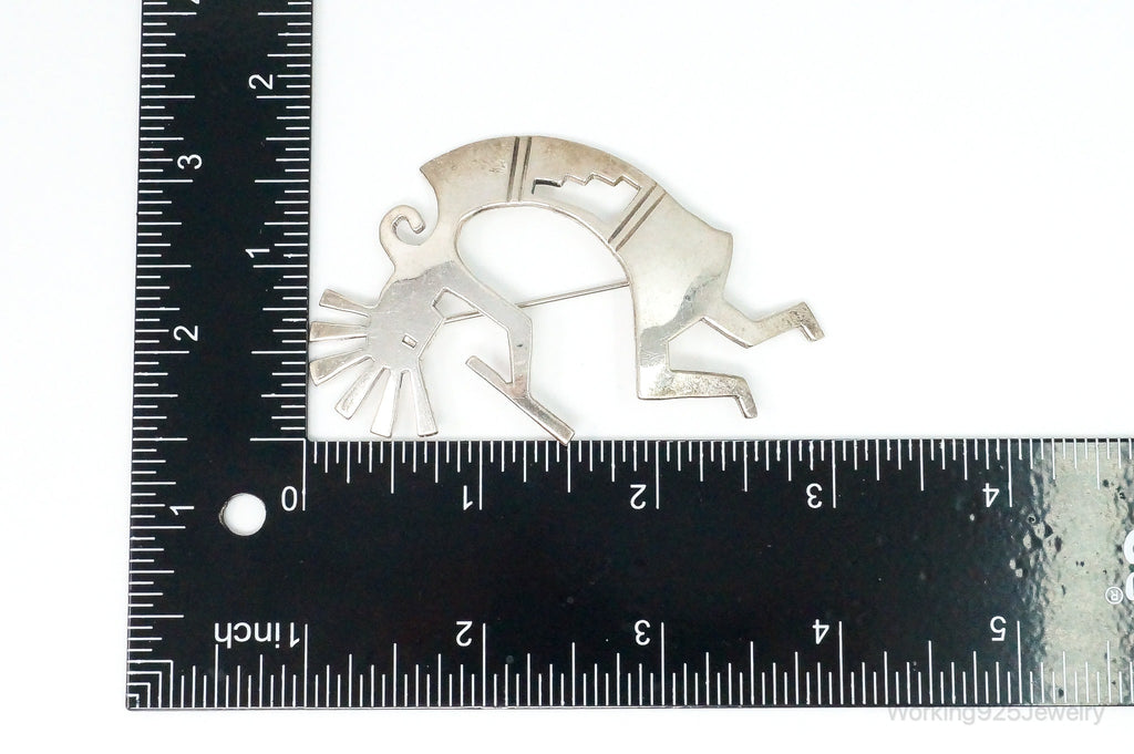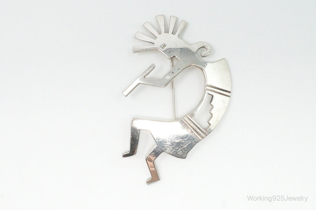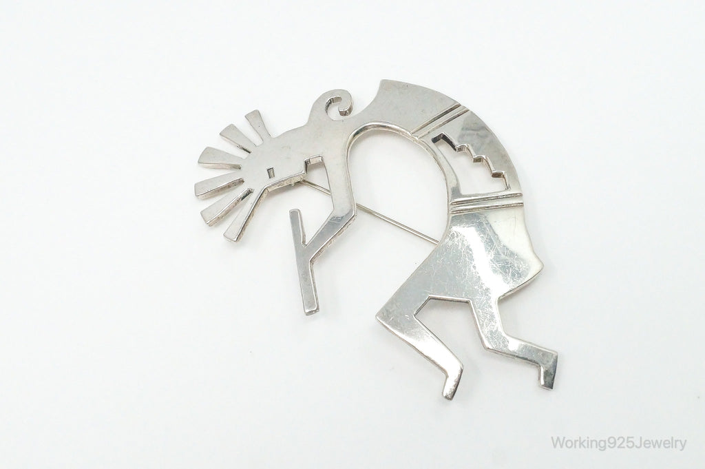 Large Vintage Native American Dancing Kokopelli Sterling Silver Brooch Pin