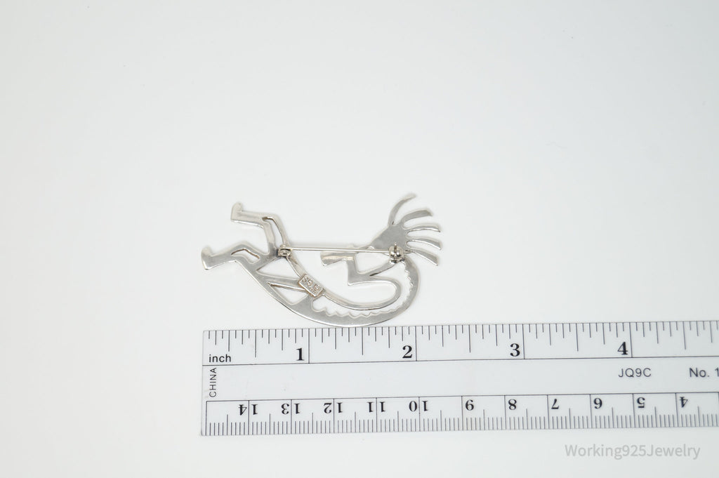 Large Vintage Native American G.S. Dancing Kokopelli Sterling Silver Brooch Pin