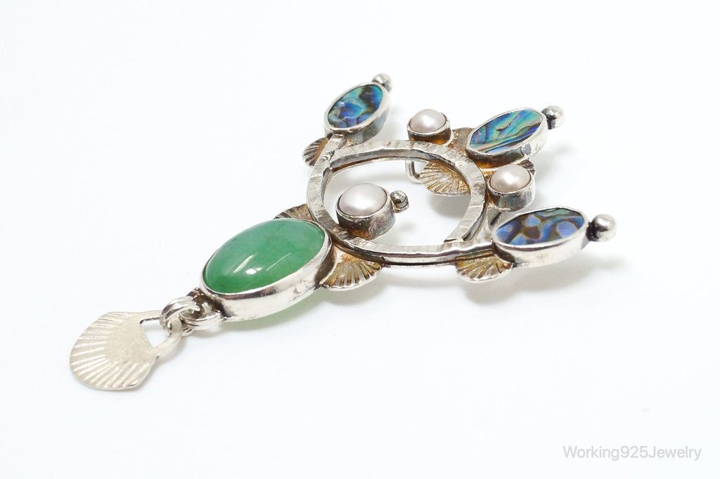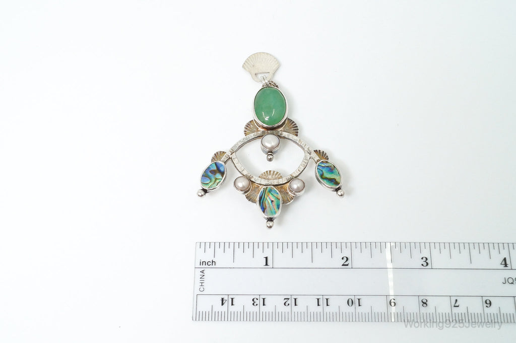 Large Vintage Native American Multi Gem Sterling Silver Pendant