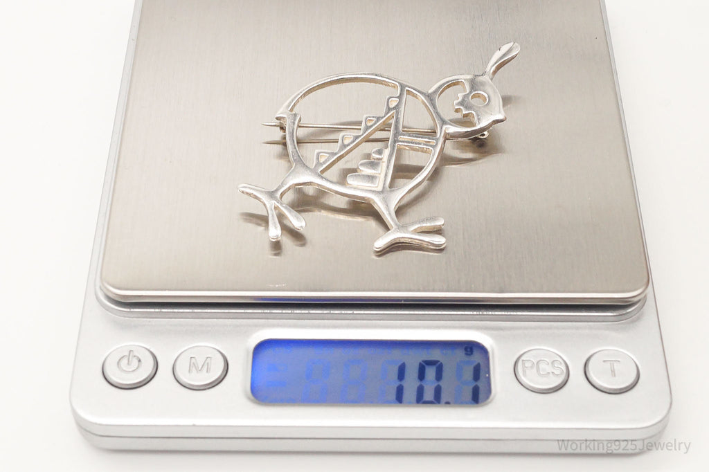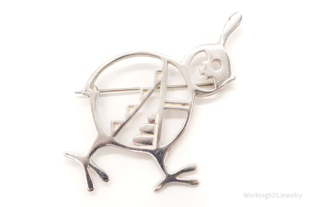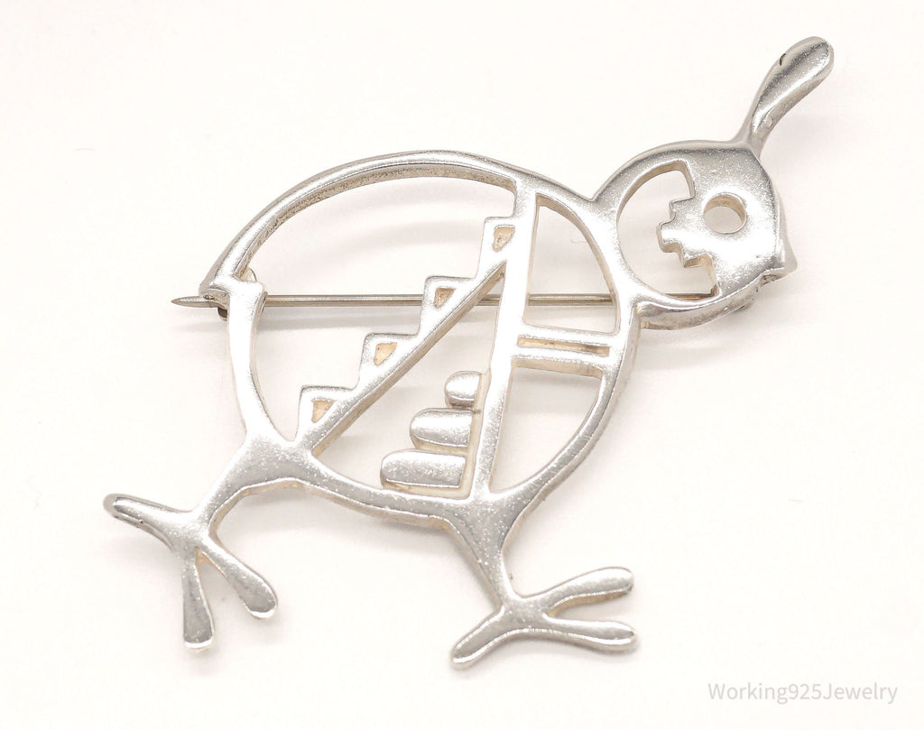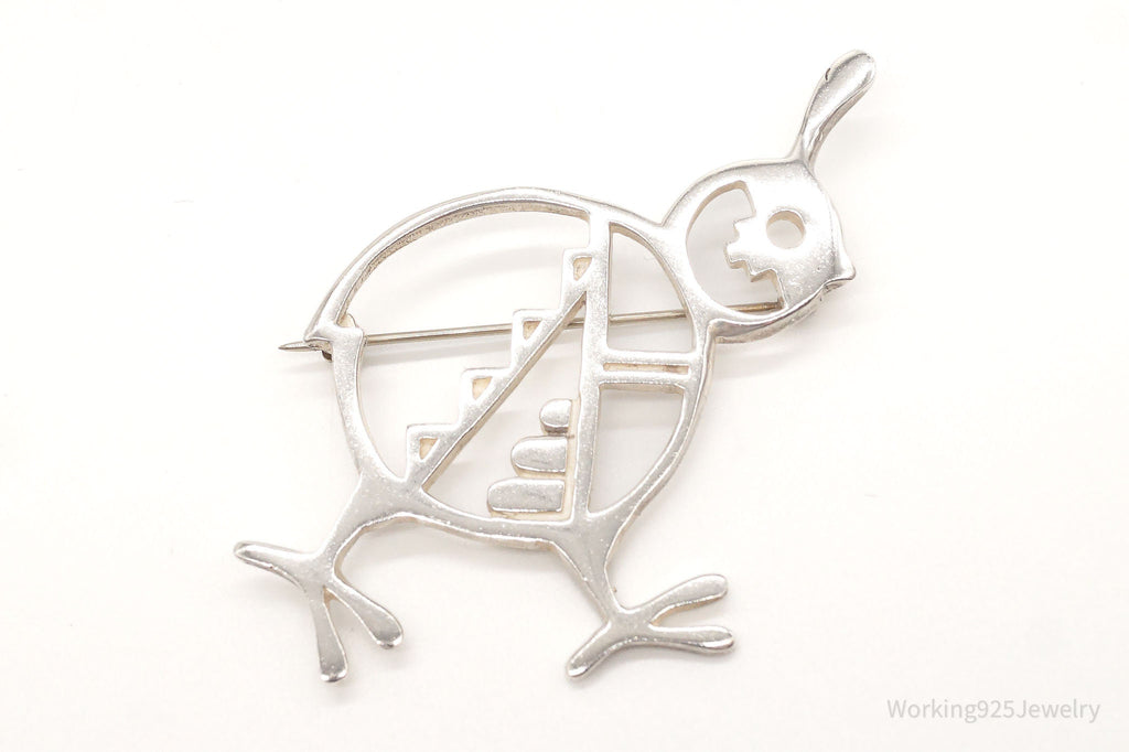 Large Vintage Native American Quail Bird Sterling Silver Brooch Pin