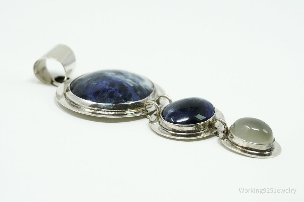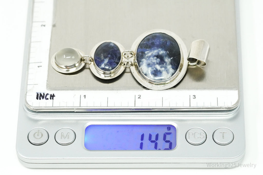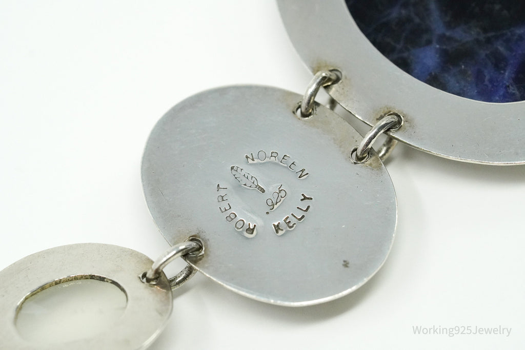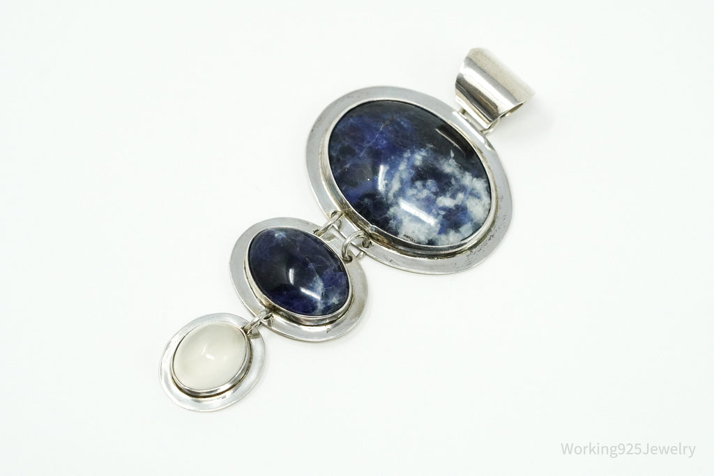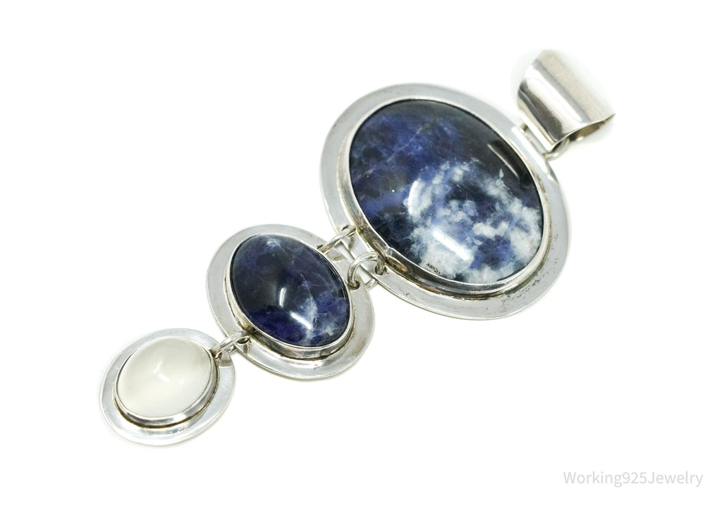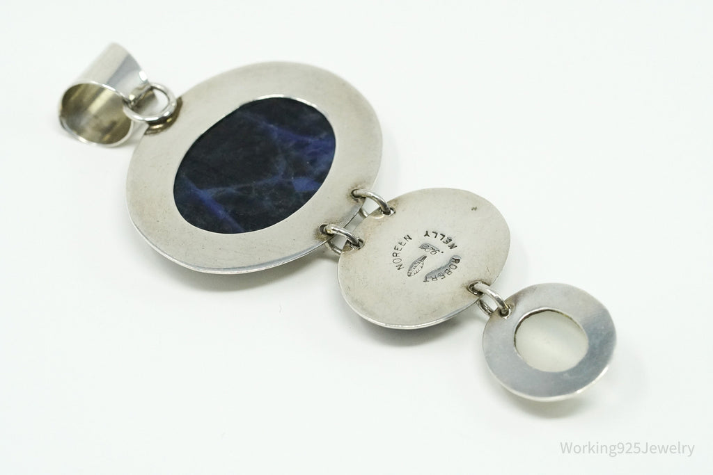 Large Vintage Native American Robert & Noreen Kelly Sodalite & White Moonstone Sterling Silver Pendant