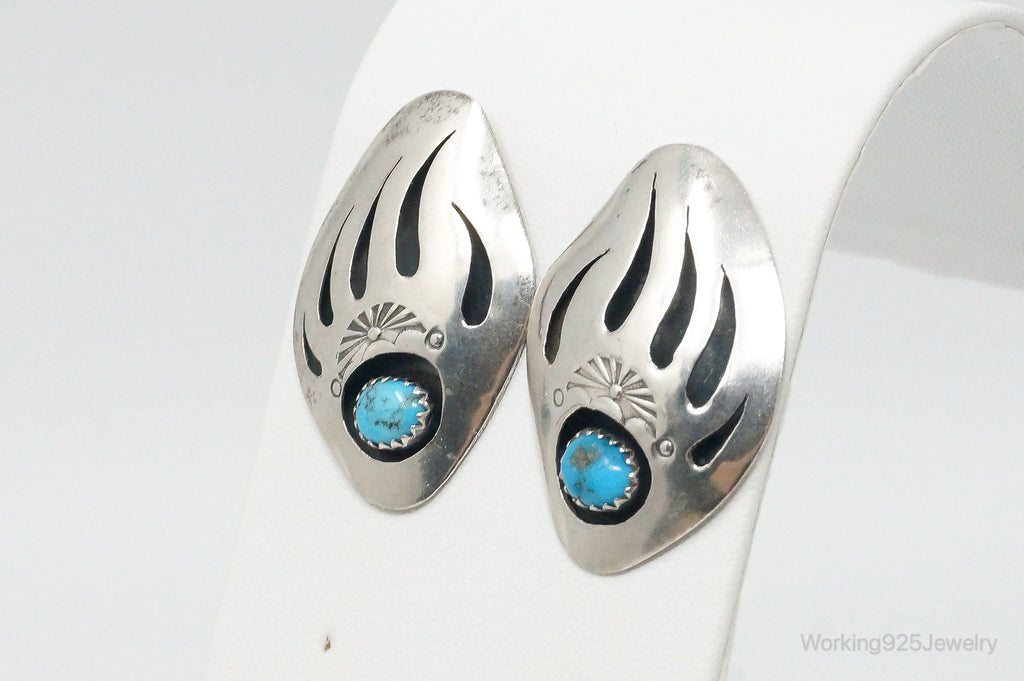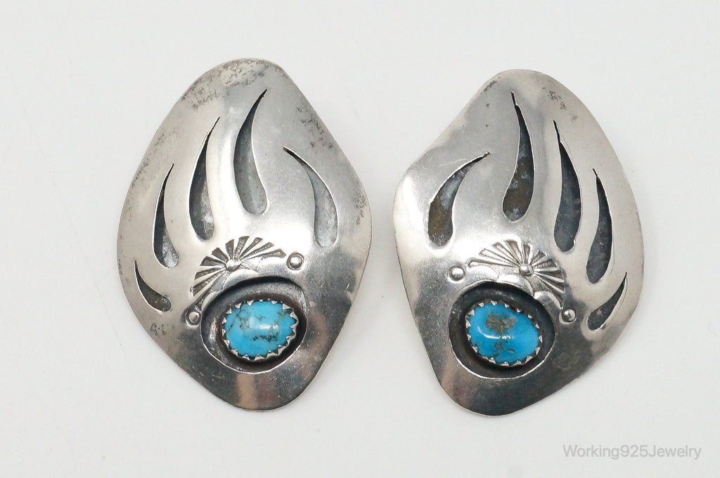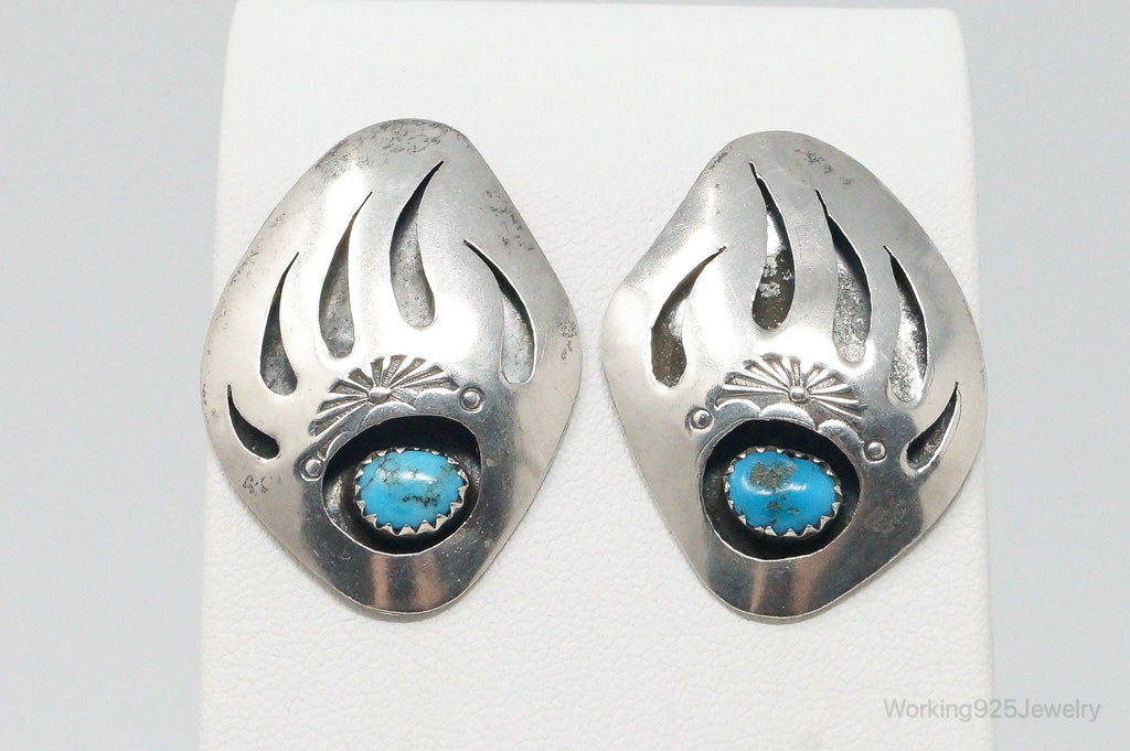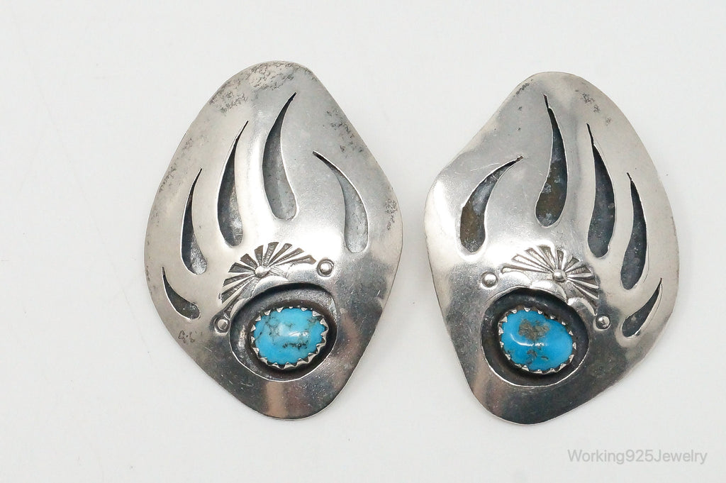 Large Vintage Native American Turquoise Sterling Silver Earrings
