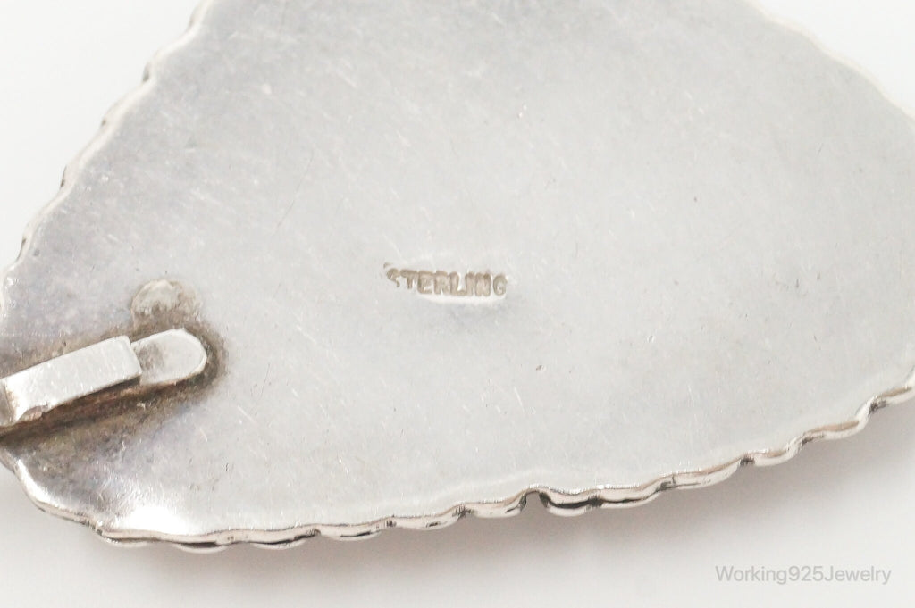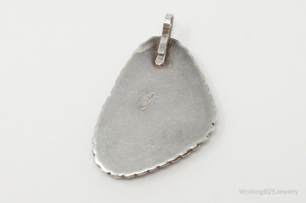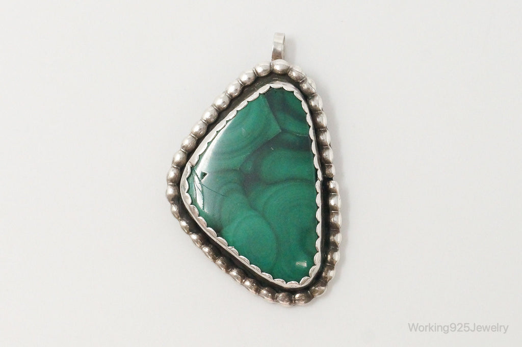 Large Vintage Native American Unsigned Malachite Sterling Silver Pendant