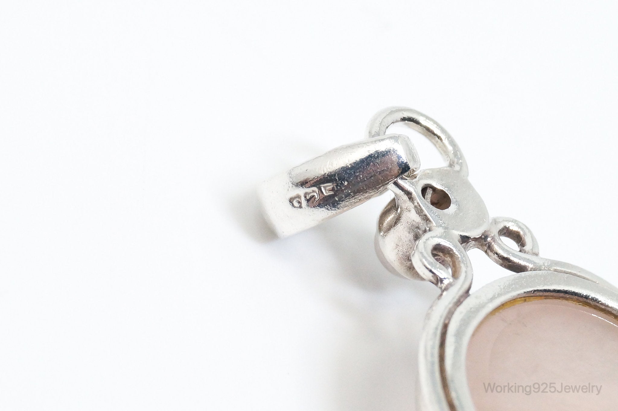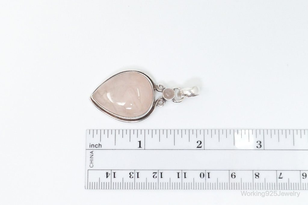 Large Vintage Rose Quartz Sterling Silver Necklace Pendant