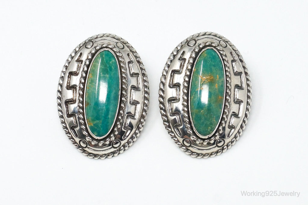 Large Western Designer Carolyn Pollack Relios Turquoise Sterling Silver Earrings