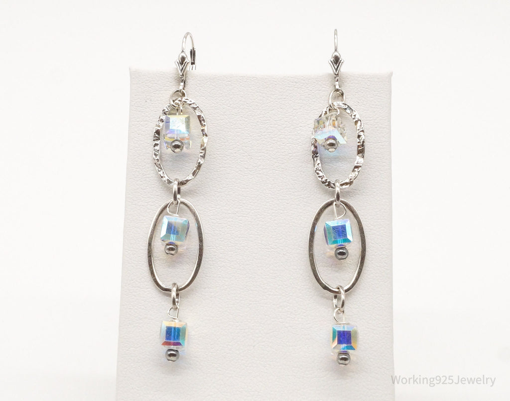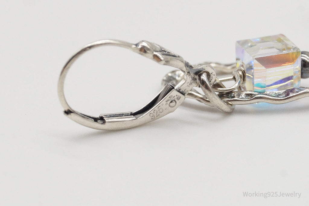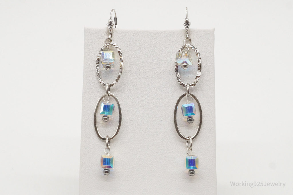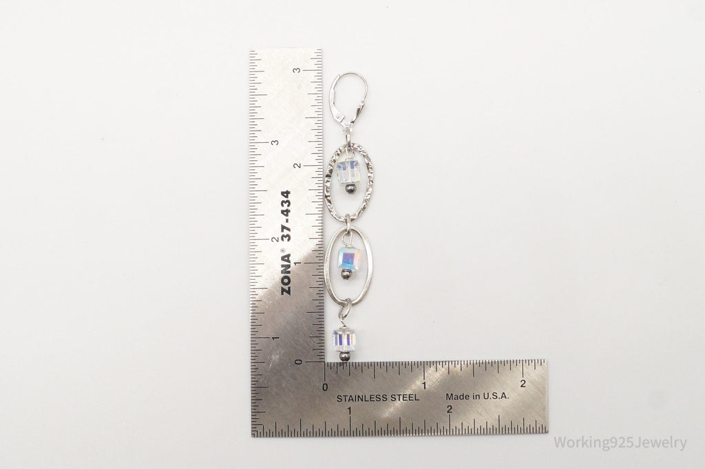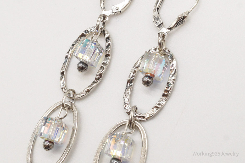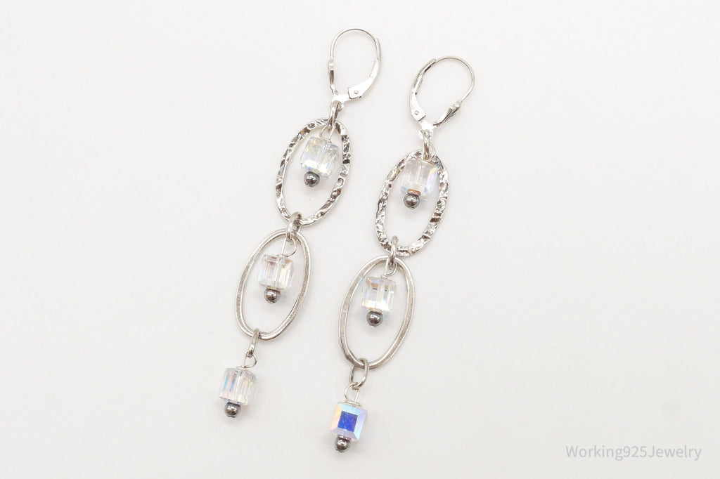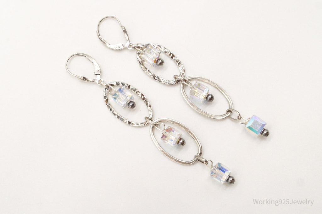 Long Vintage Crystal Sterling Silver Earrings