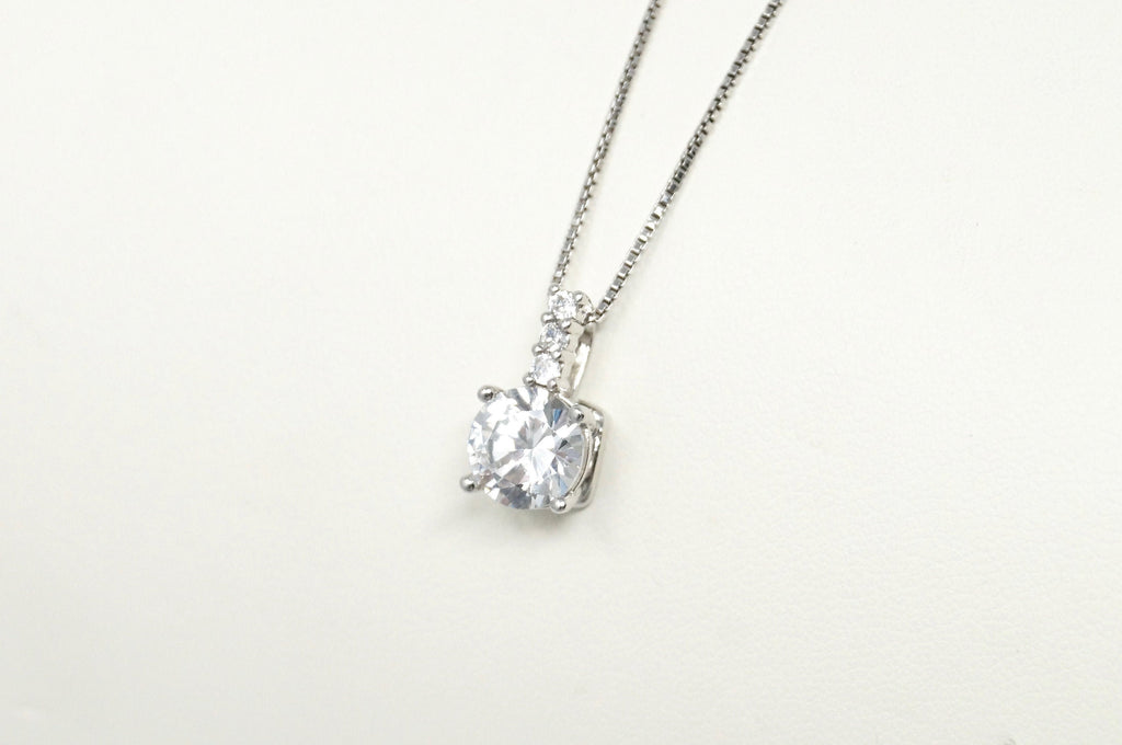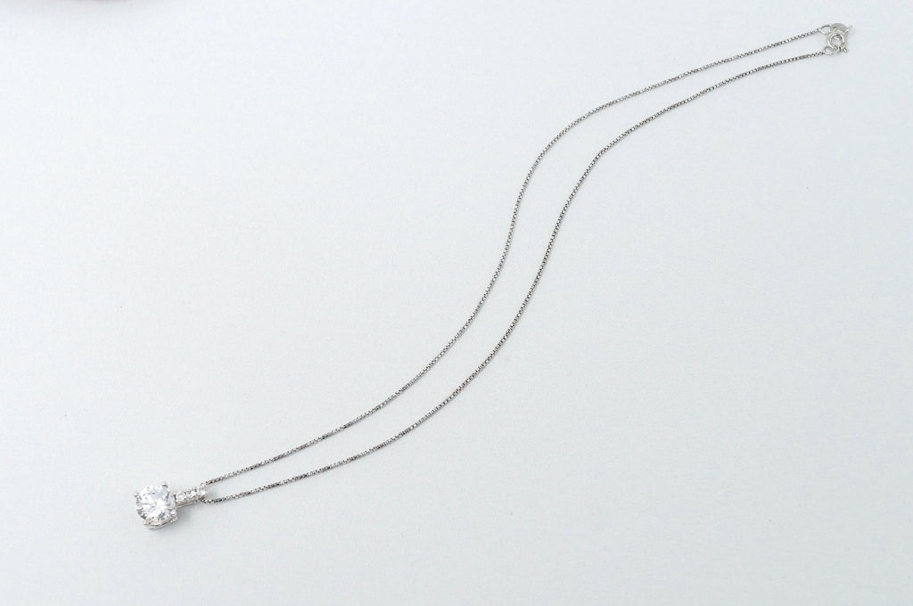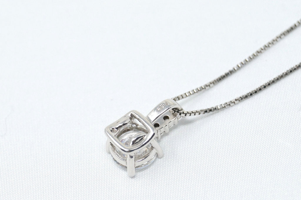 Lovely Large Simulated Diamond Sweetheart Necklace Sterling Silver 16"