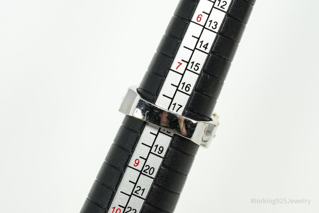 Gemstones: We carefully examine every gemstone under 10× magnification and compare its color and characteristics to what's typical for that stone type. We also use a Presidium gem tester to verify our assessment. While this allows us to confidently identify the type of gemstone, please note that the Presidium tester does not distinguish between earth-mined and lab-grown stones. Because GIA certification is very expensive, it's not something we offer with our sterling silver vintage pieces. We always do our best to accurately identify every stone so you can shop with confidence.