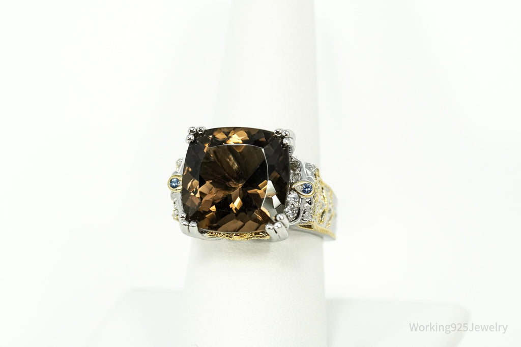 Michael Valitutti Gems en Vogue Smoky Quartz 24K Yellow Gold Sterling Silver Ring - Size 8 - Smoky Quartz - White Zircon - Blue Topaz