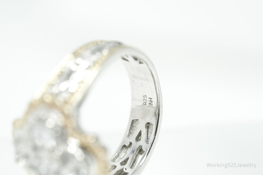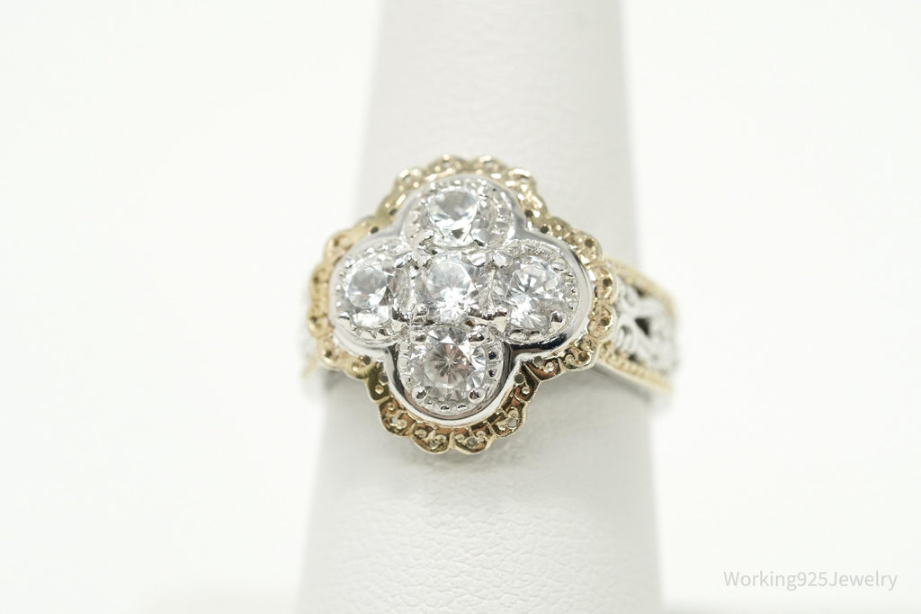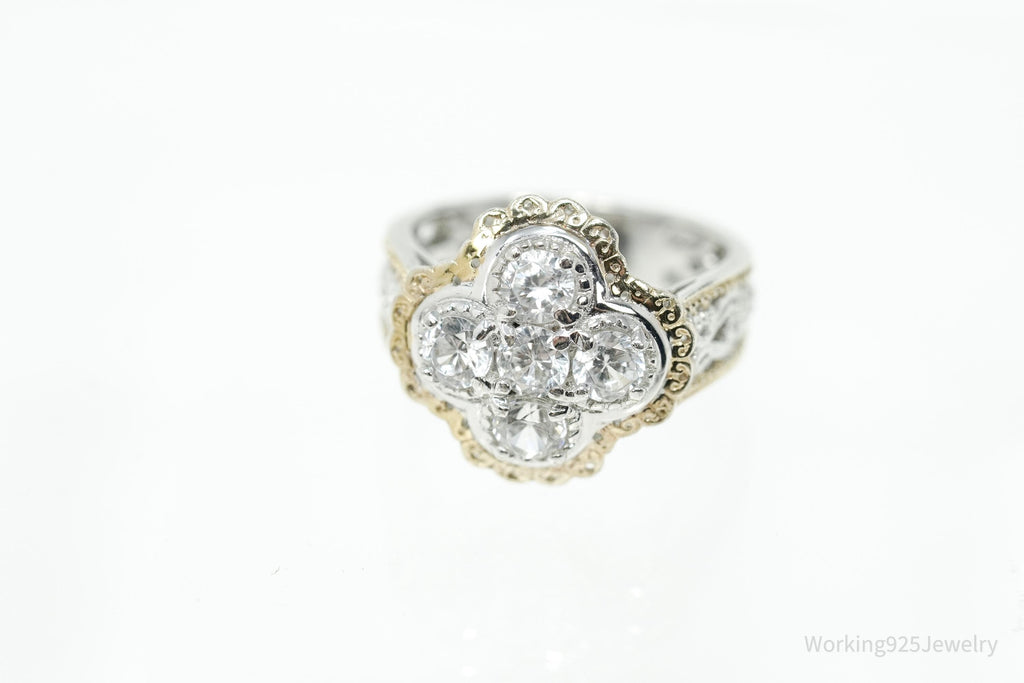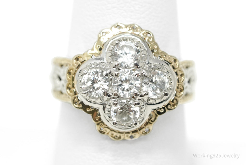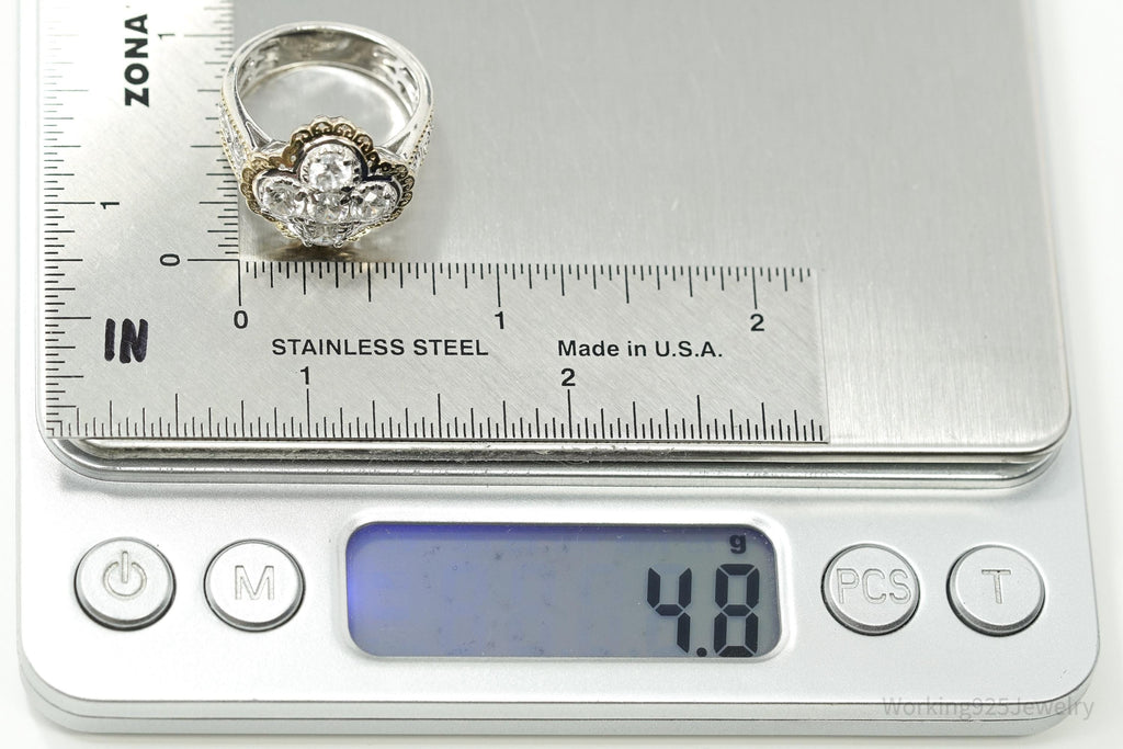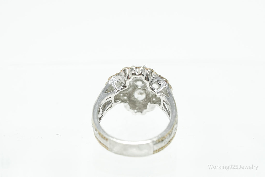 Michael Valitutti White Zircon Gold Vermeil Palladium Sterling Silver Ring Size 7.5