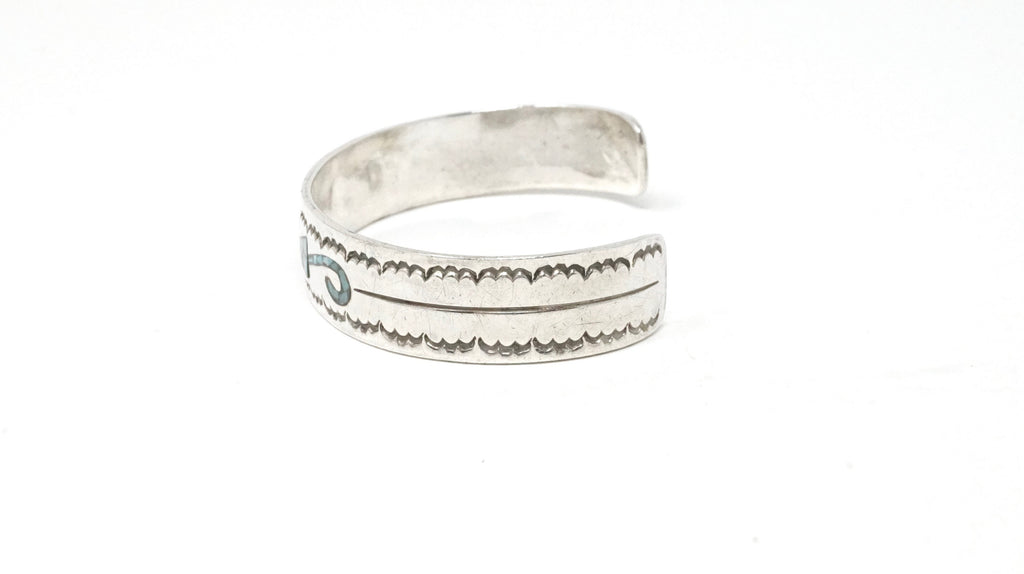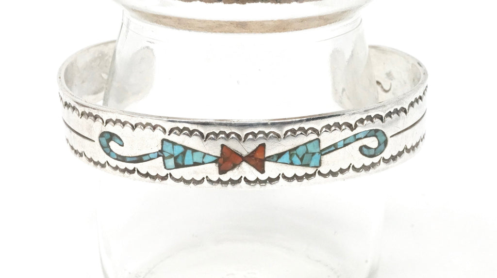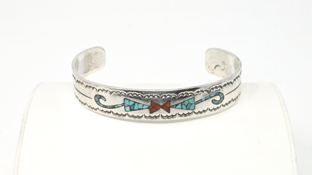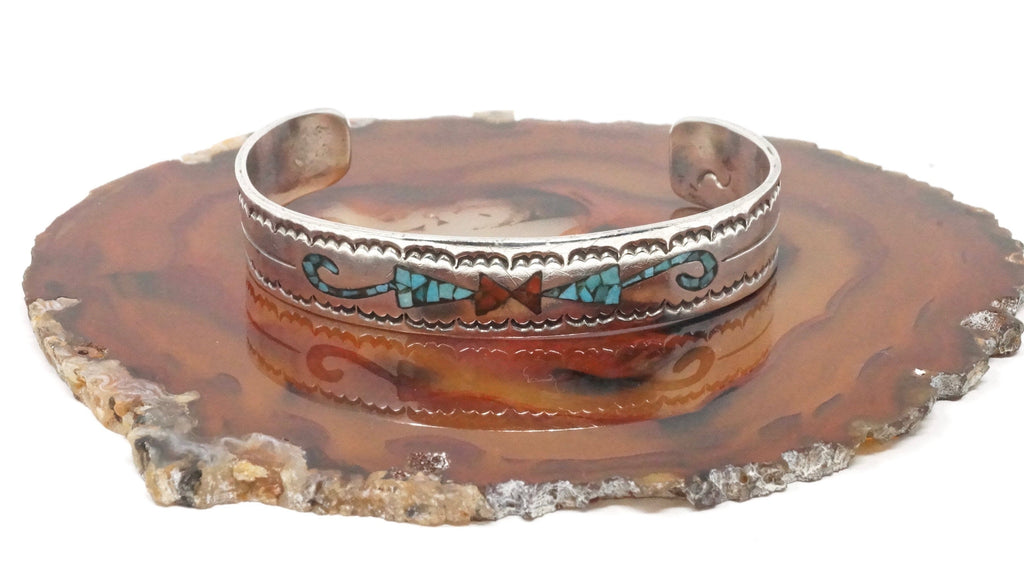 Native American Fred Thompson Turquoise Coral Sterling Silver Cuff Bracelet