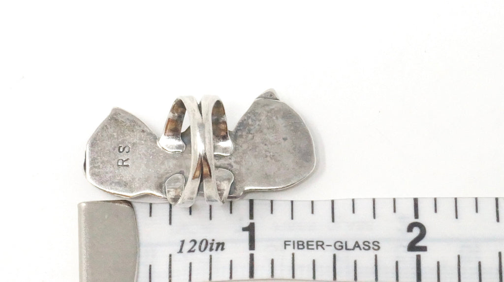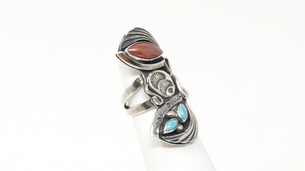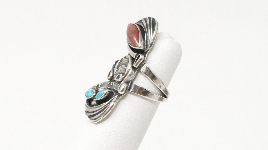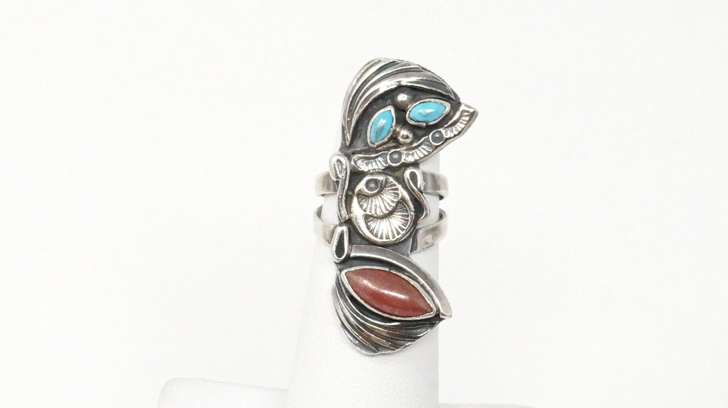 Native American Navajo Roger Skeet RS Turquoise Coral Sterling Silver Ring Sz 4
