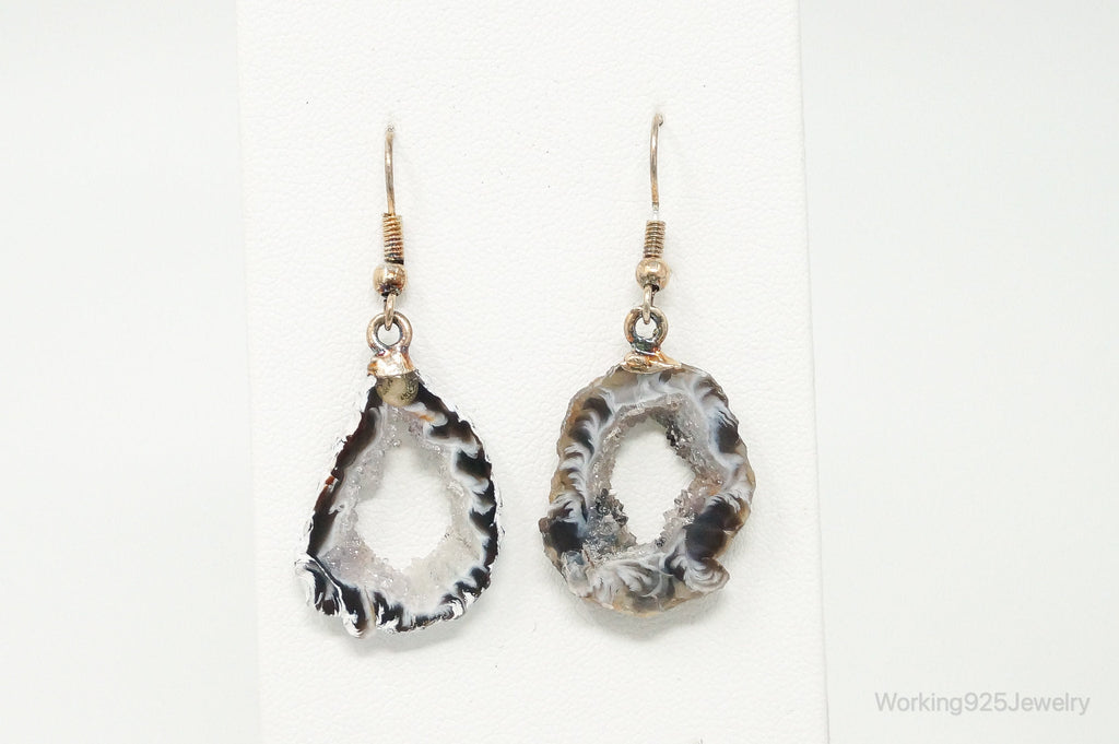 Natural Agate Geode Sterling Silver Earrings