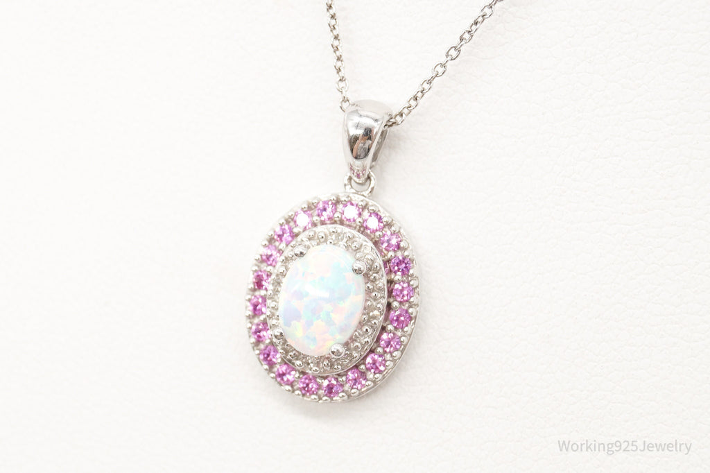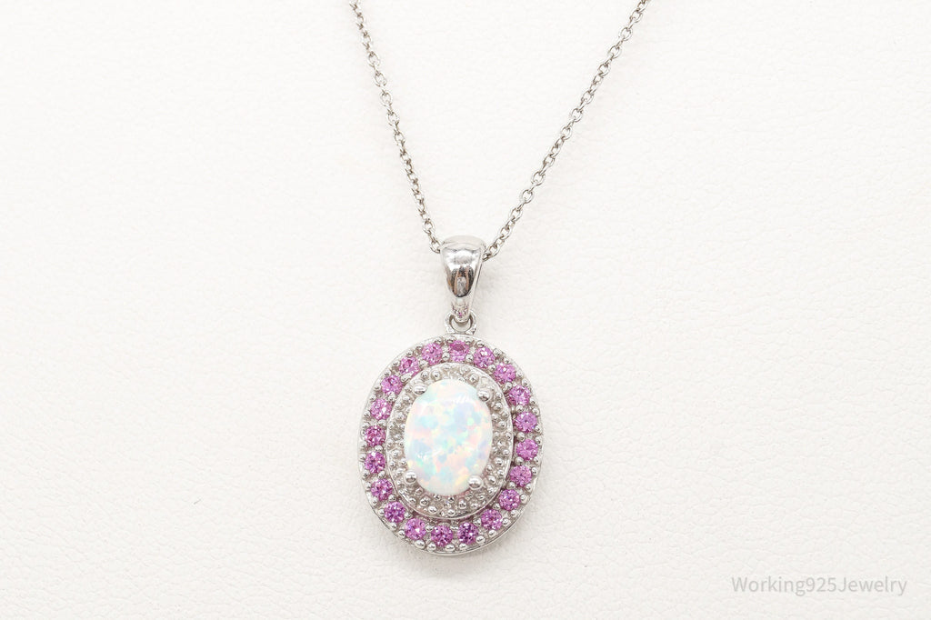 Opal Pink Topaz Cubic Zirconia Sterling Silver Necklace